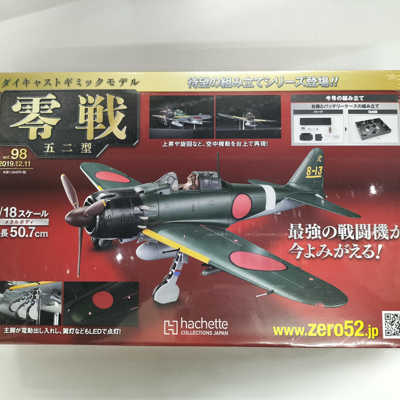 待望の組み立てシリーズ1/18スケール、全長50.7cmの零戦です。台座上面プレート付属。