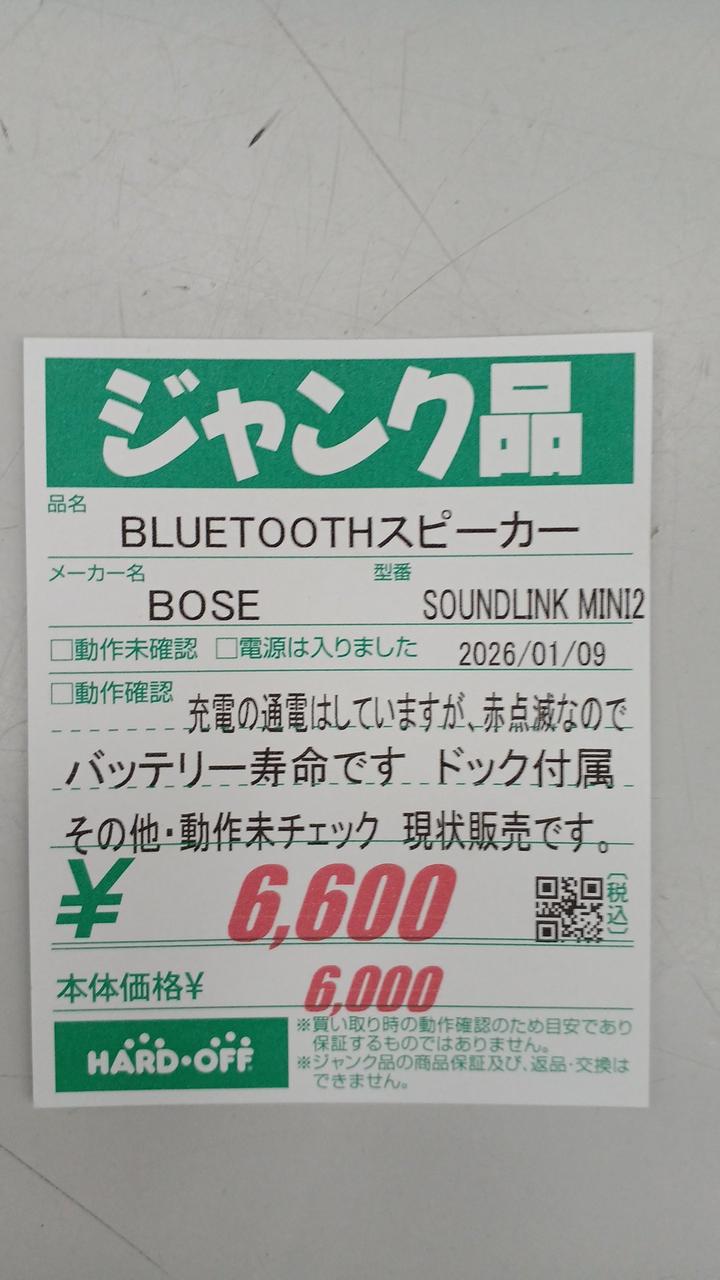 ※ジャンク品は保証対象外となります