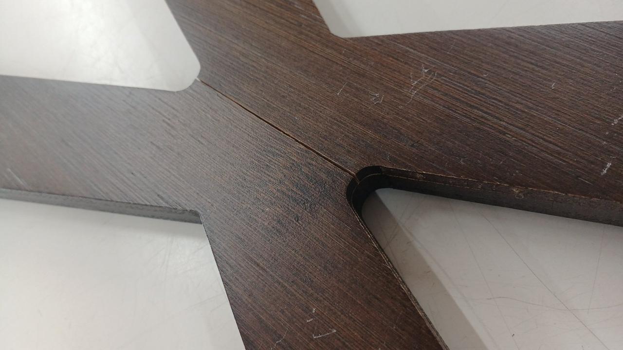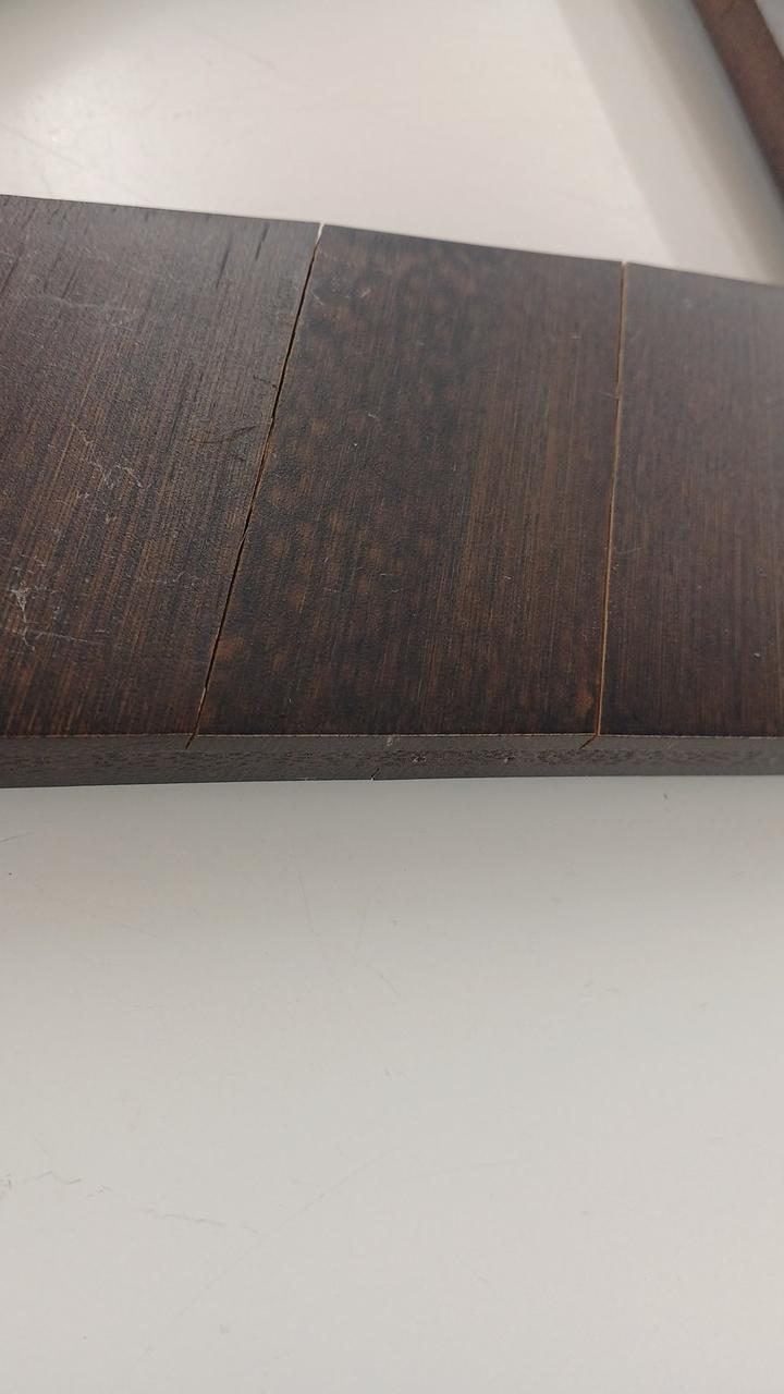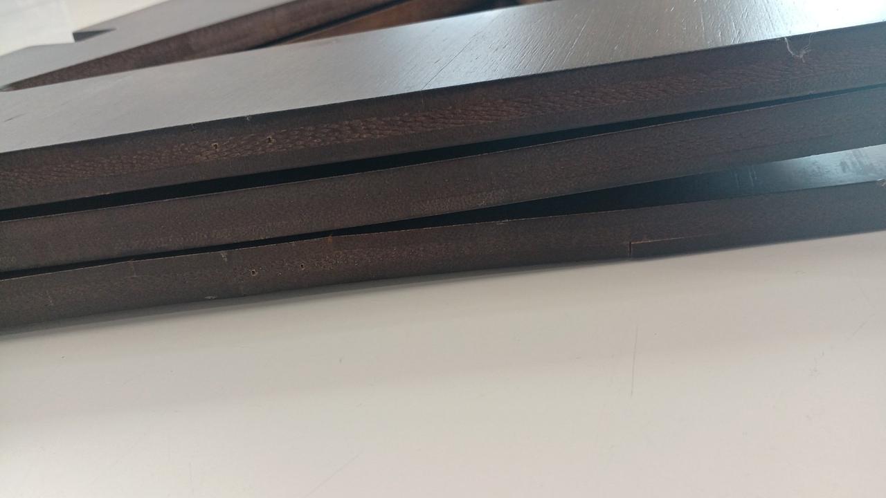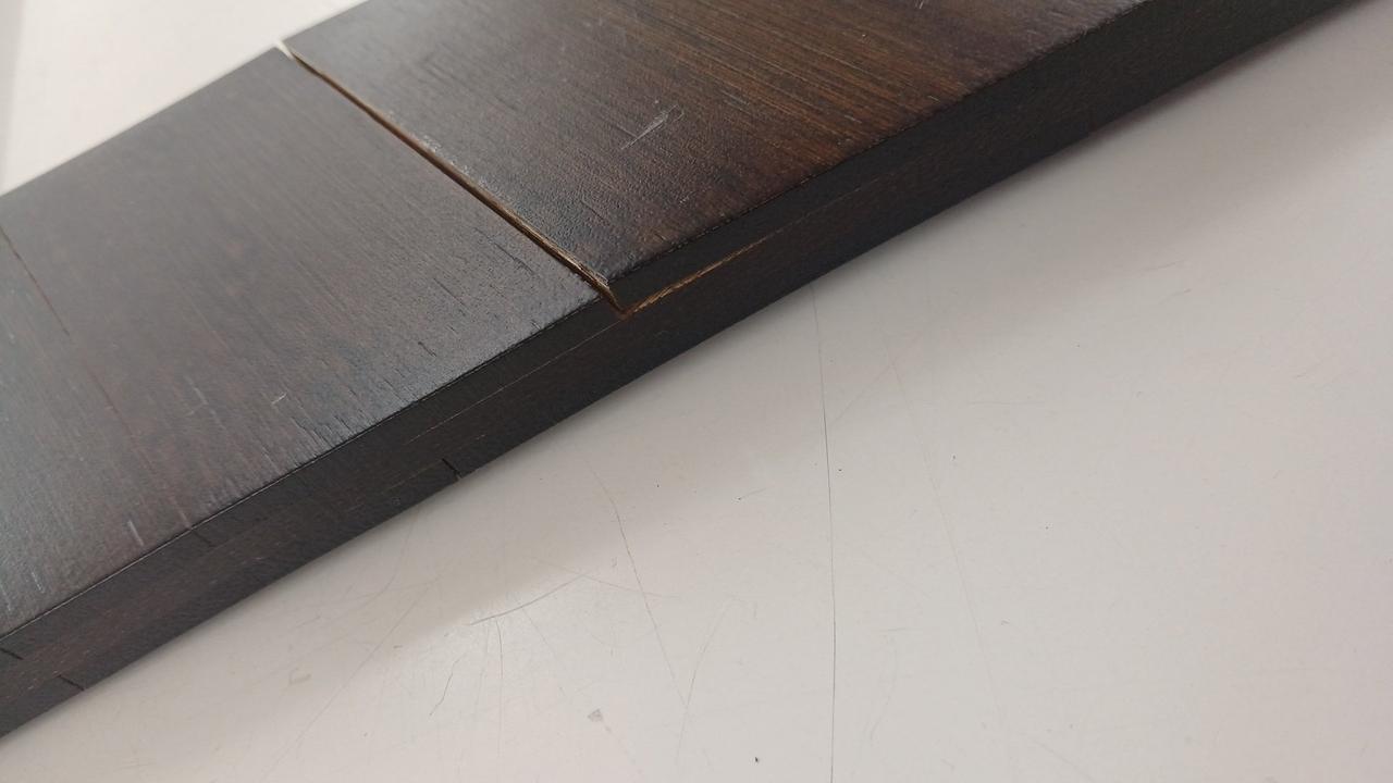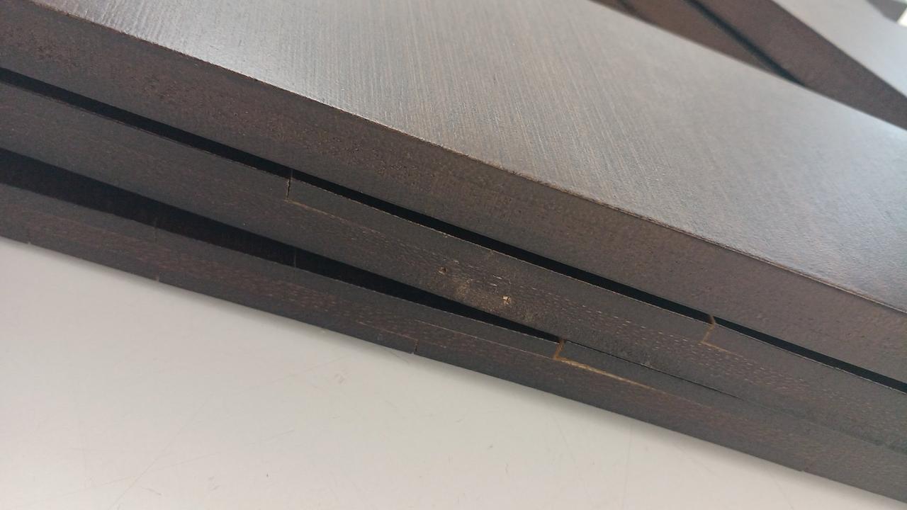 竹集成材の反りが強く竹材どうしのはく離がかなり発生していて、特に脚に目立ちます
