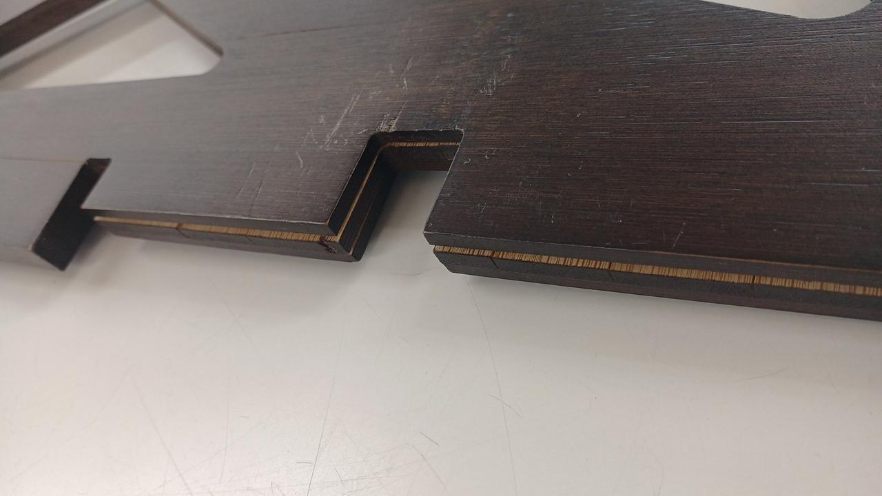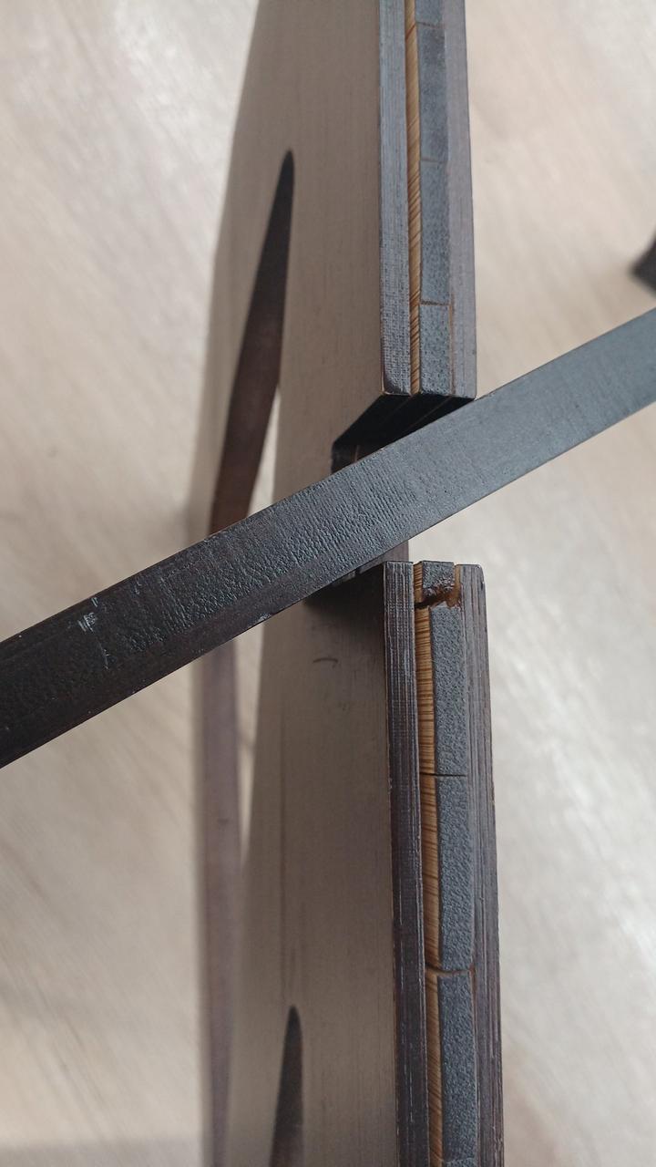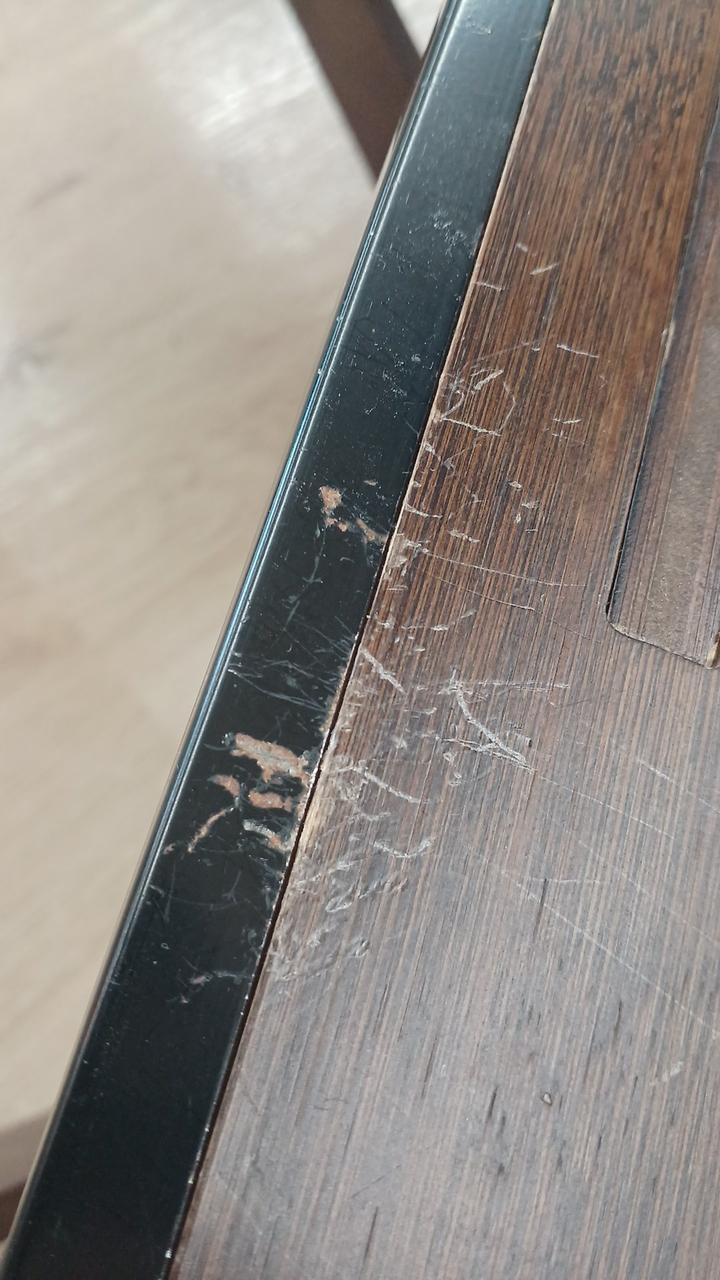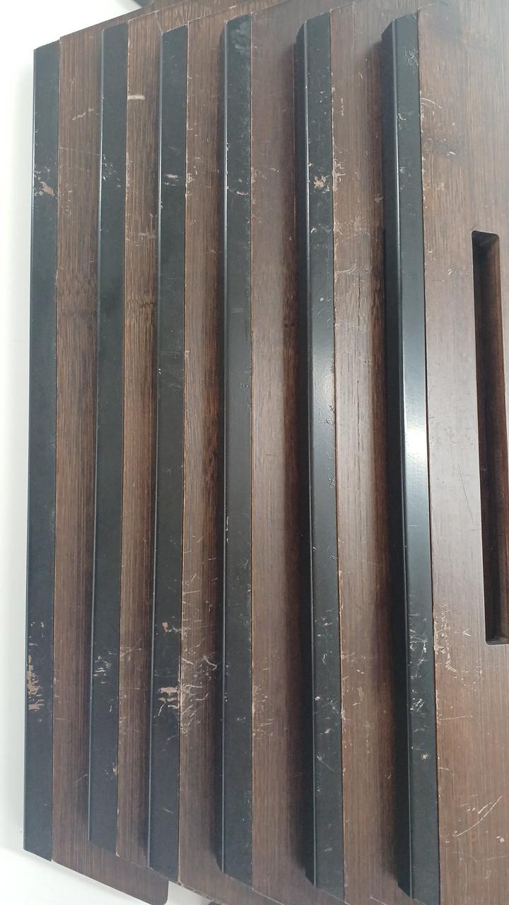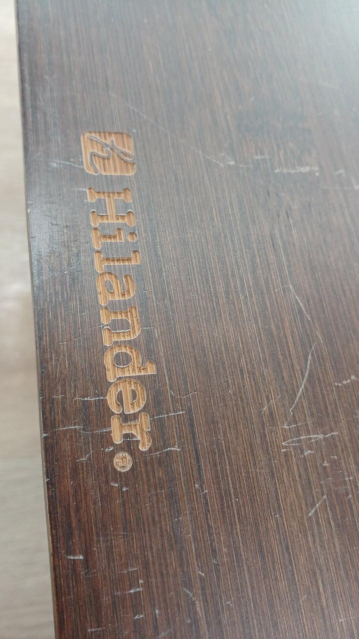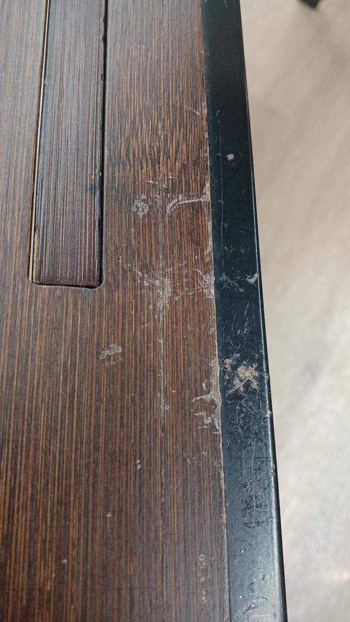 竹集成材の反りが強く竹材どうしのはく離がかなり発生していて、特に脚に目立ちます