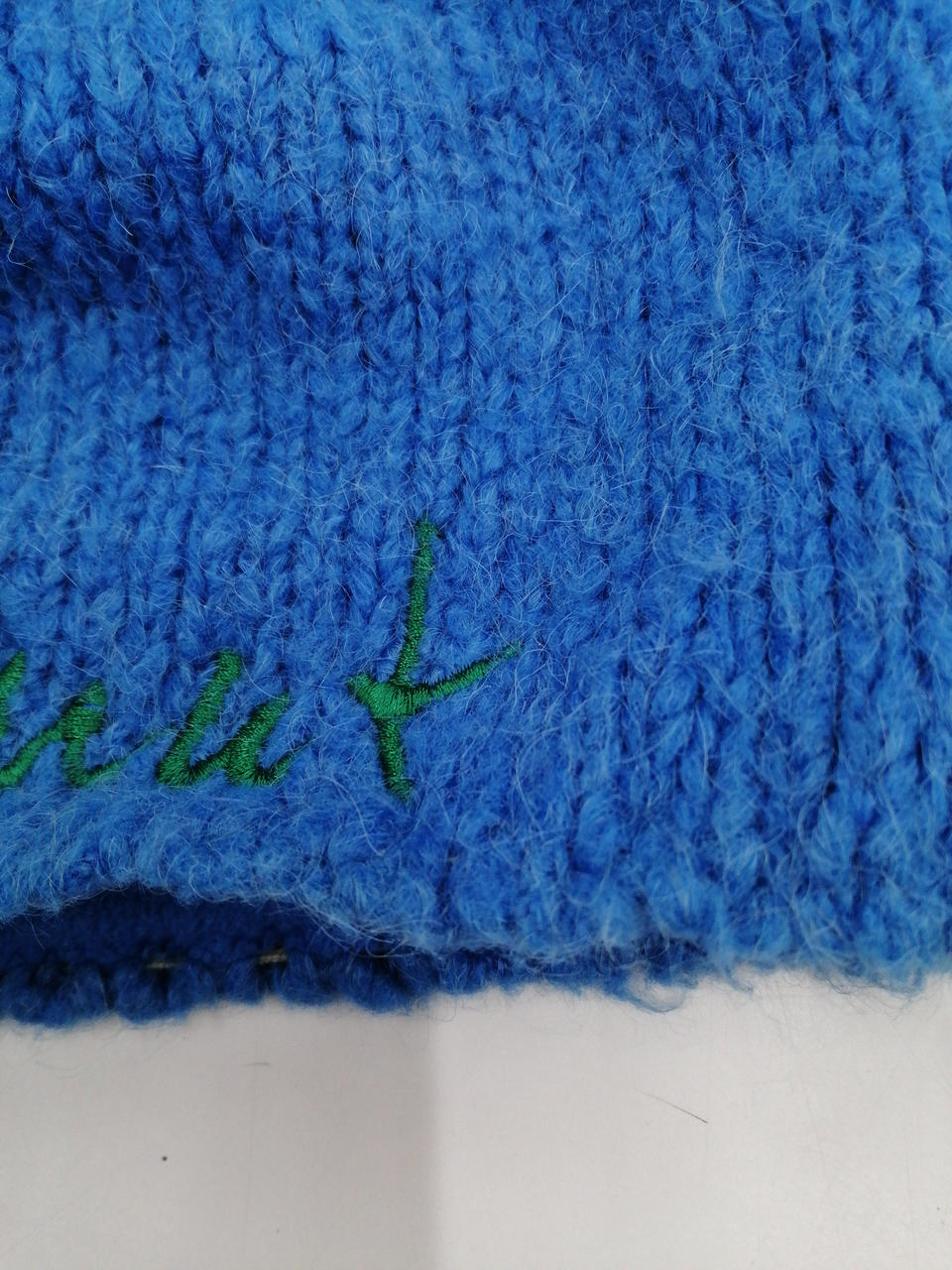 毛玉があります。色味は明るいブルーです。 |