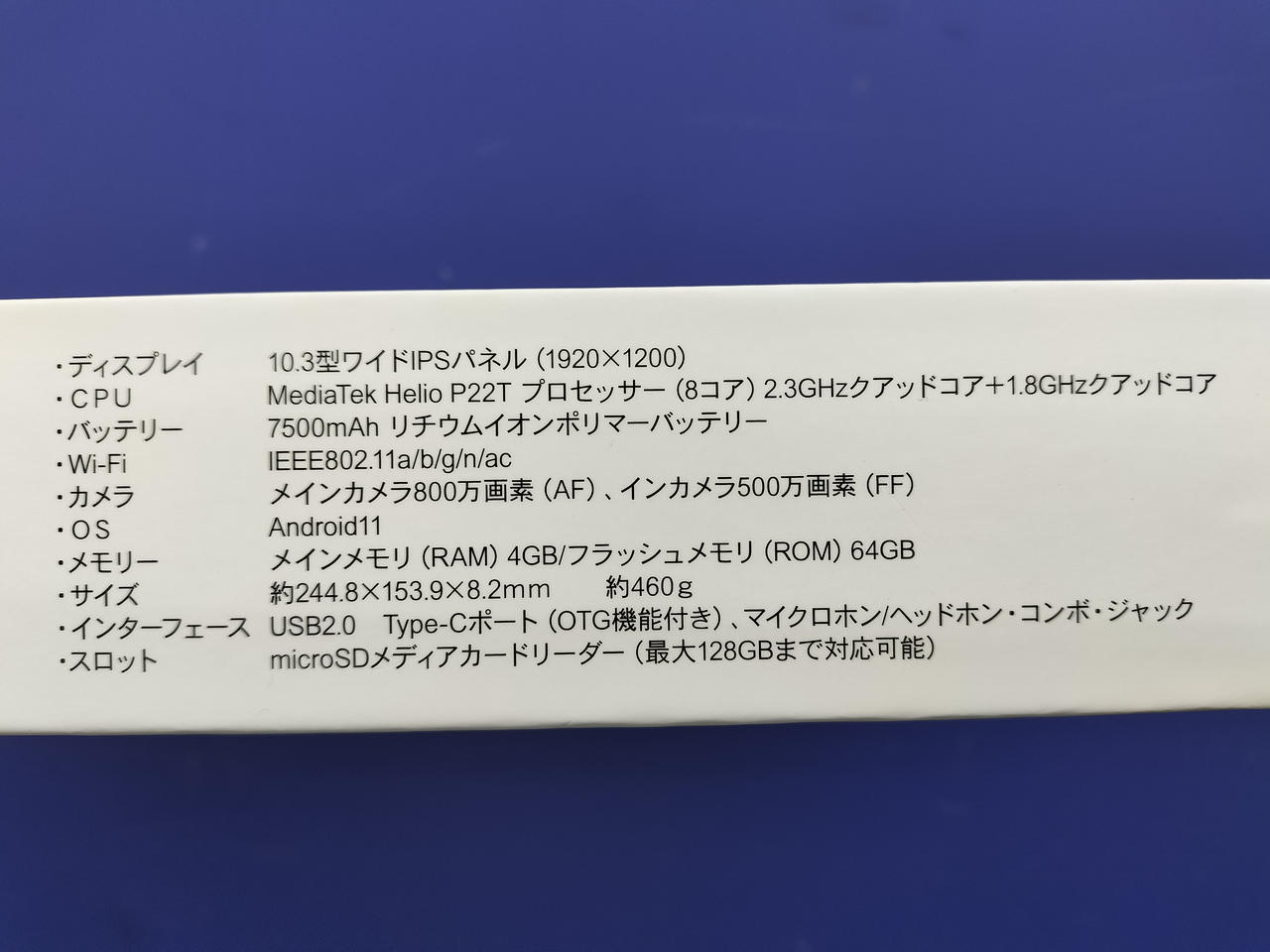 容量:64GB 画面サイズ:10.3インチ 画面解像度:1920x1200 OS:Android 11 Wi-Fiモデル