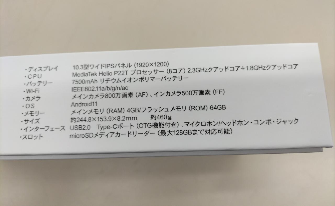 容量:64GB 画面サイズ:10.3インチ 画面解像度:1920x1200 OS:Android 11 Wi-Fiモデル |