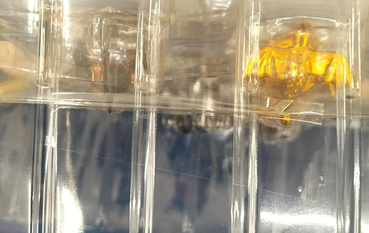箱に傷や汚れ、めくれ、ゆがみがあります。中箱に割れがあります。中箱にテープが貼られている為中は未使用だと思われます。 |