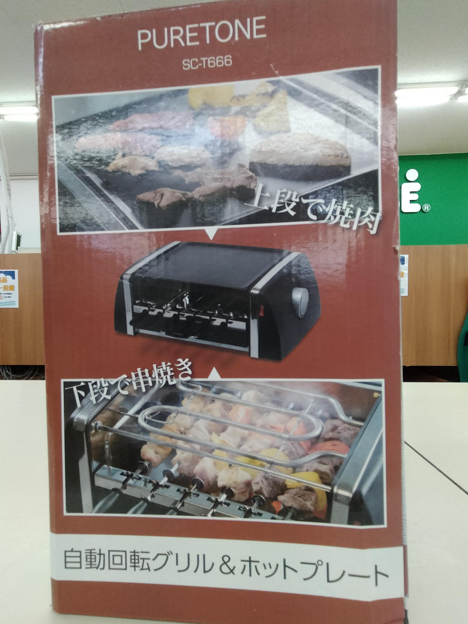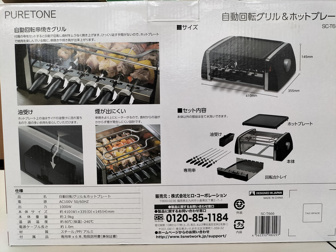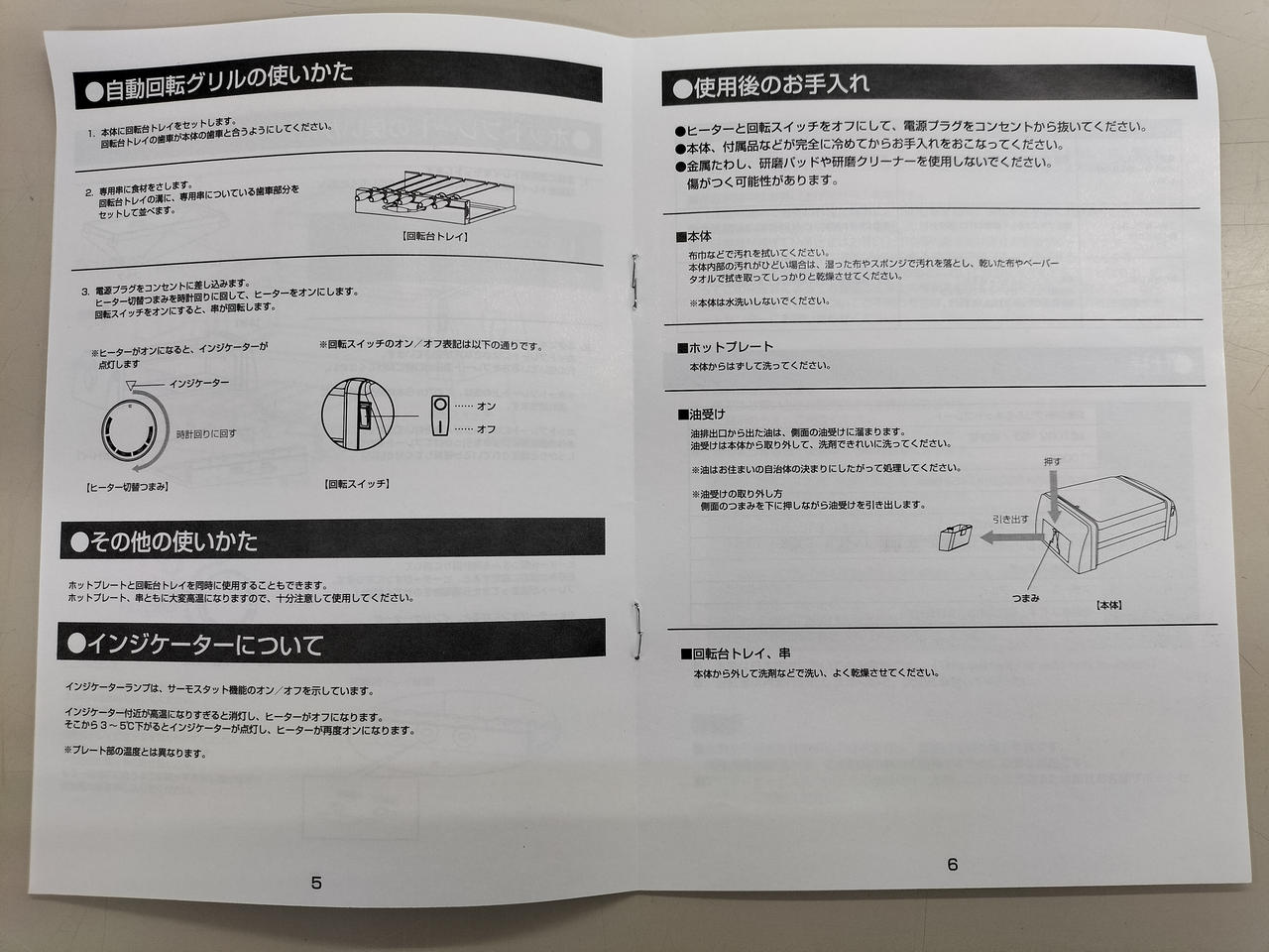 専用の串をセットすると自動で回転し、ひっくり返す手間なく食材をムラなく焼き上げます。 |