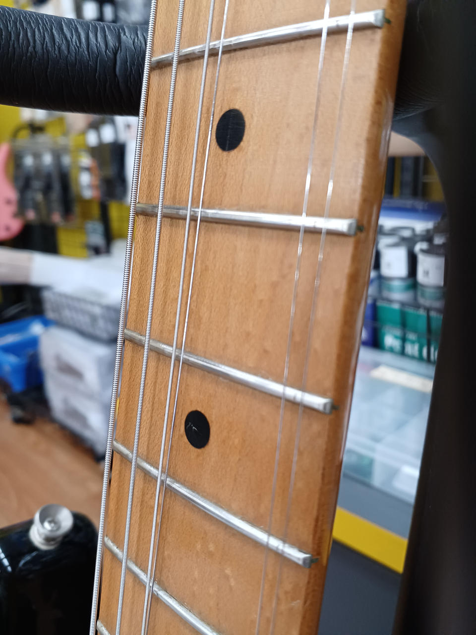 2002~2003年製 21フレット トラスロッド余裕あり。 丈夫でコストパフォーマンスに優れたメキシコ製ストラトキャスター ※ツマミにガリ音あり。ケースのファスナーに欠けとポケットのファスナー1ケ所欠品。 |
