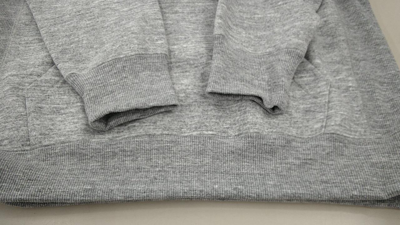 速乾性に優れたポリエステルを使用した、プルオーバーのスウェットパーカ。
