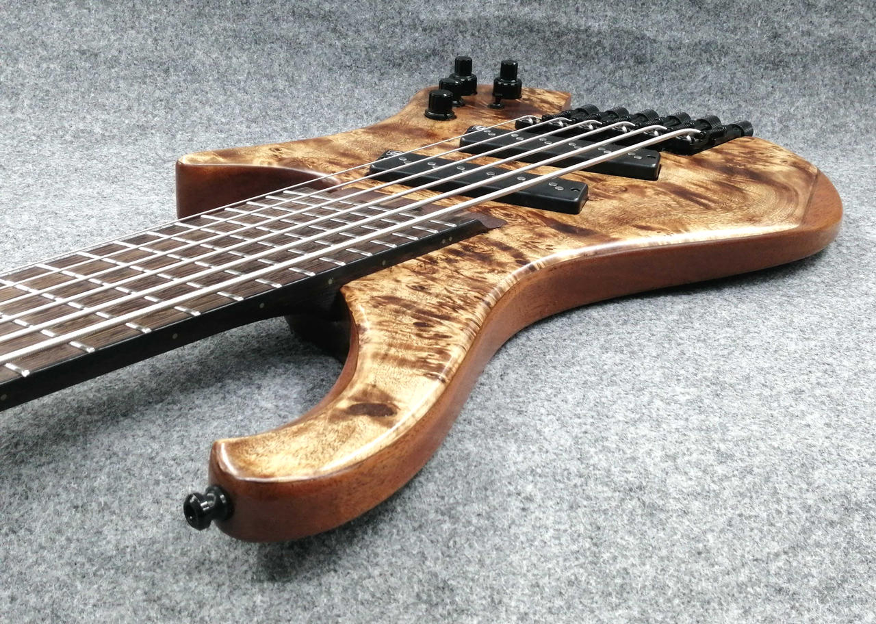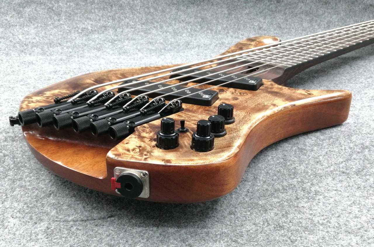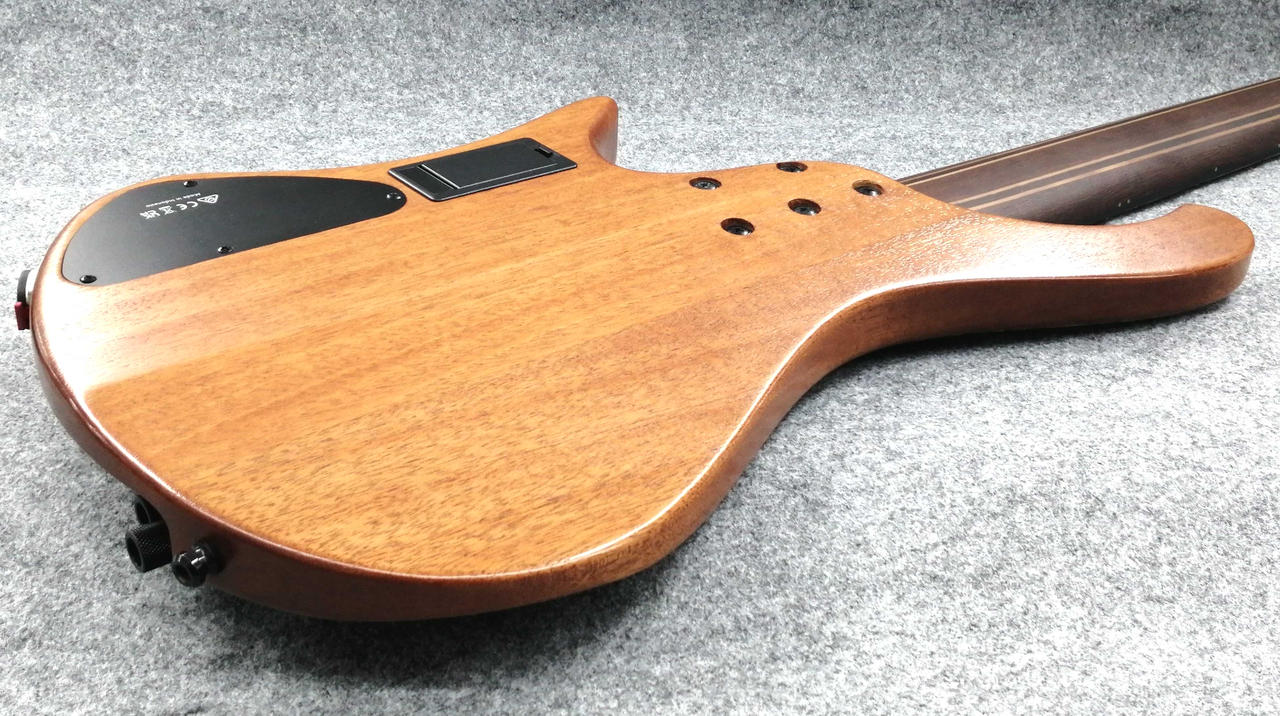 立奏/座奏問わず奏者に完璧なバランスで収まるよう設計されたエルゴノミックデザインのボディ、ボディの鳴りを深めると同時に軽量化にも繋がるチェンバー加工、通常の3バンドEQと違いMidのコントロールに融通を利かせたVari-Mid 3band EQ等、プレイアビリティを高めるため様々な要素を盛り込んだ、Workshopスポット生産のヘッドレス6弦ベース。 |