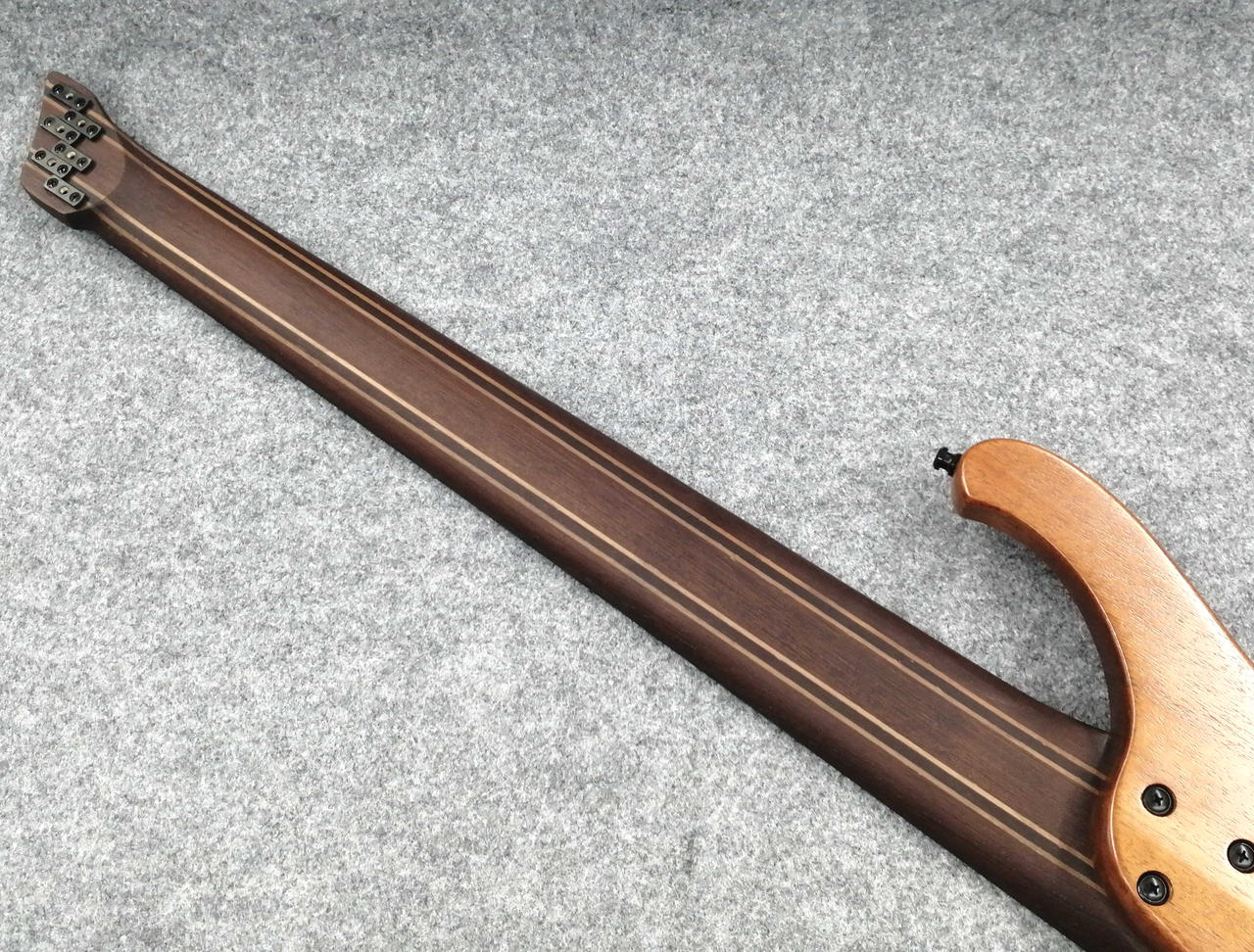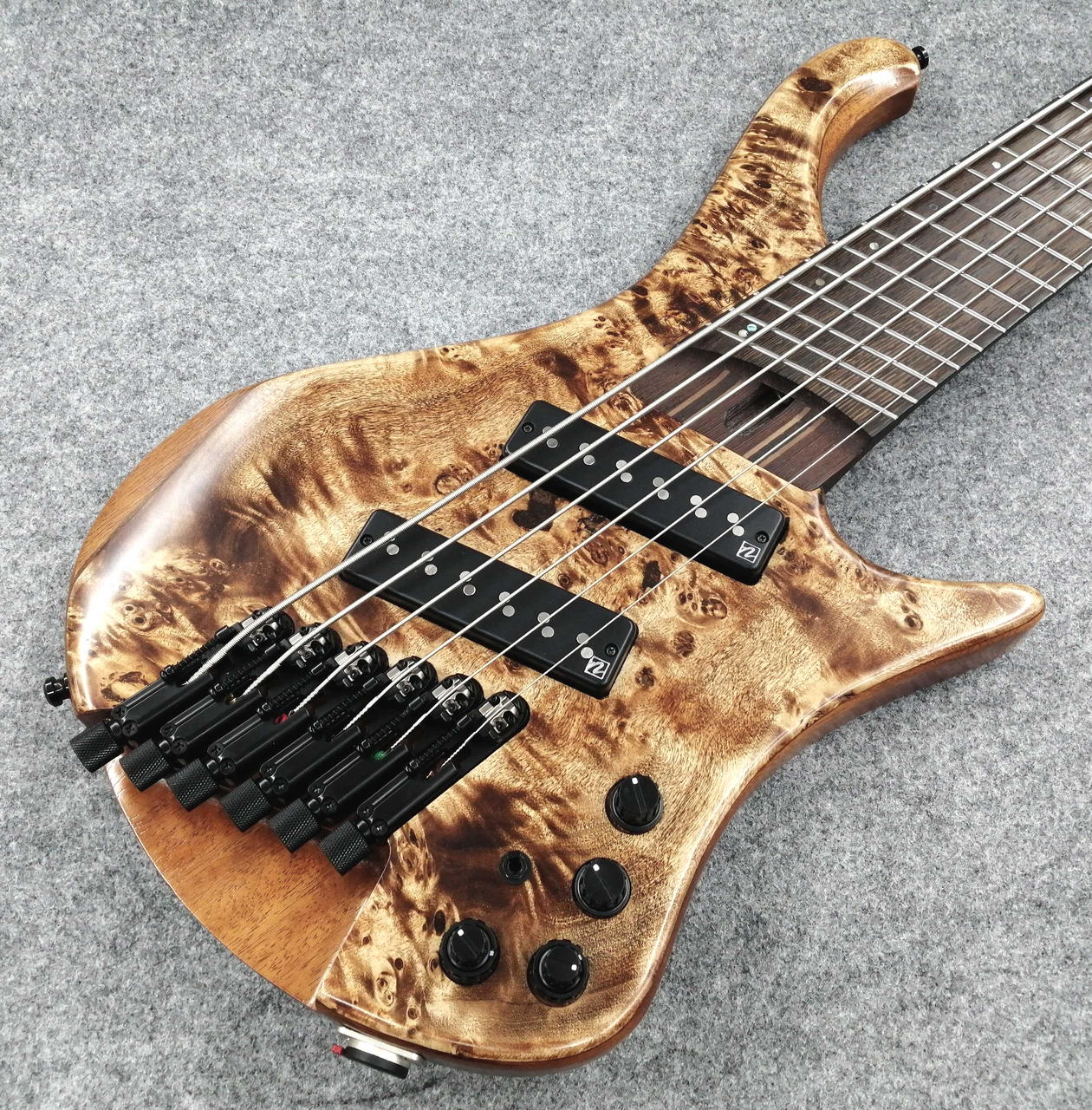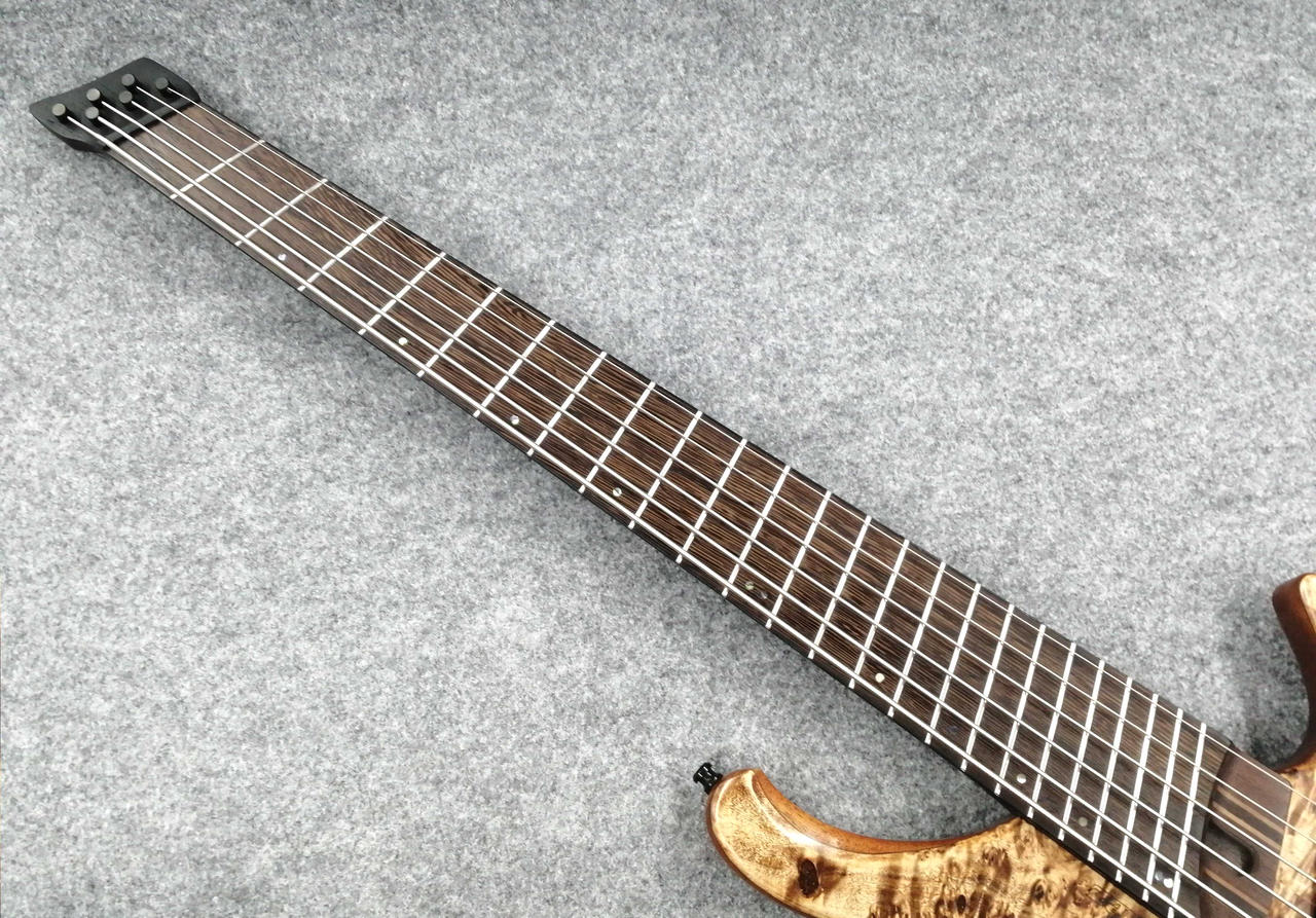 立奏/座奏問わず奏者に完璧なバランスで収まるよう設計されたエルゴノミックデザインのボディ、ボディの鳴りを深めると同時に軽量化にも繋がるチェンバー加工、通常の3バンドEQと違いMidのコントロールに融通を利かせたVari-Mid 3band EQ等、プレイアビリティを高めるため様々な要素を盛り込んだ、Workshopスポット生産のヘッドレス6弦ベース。 |