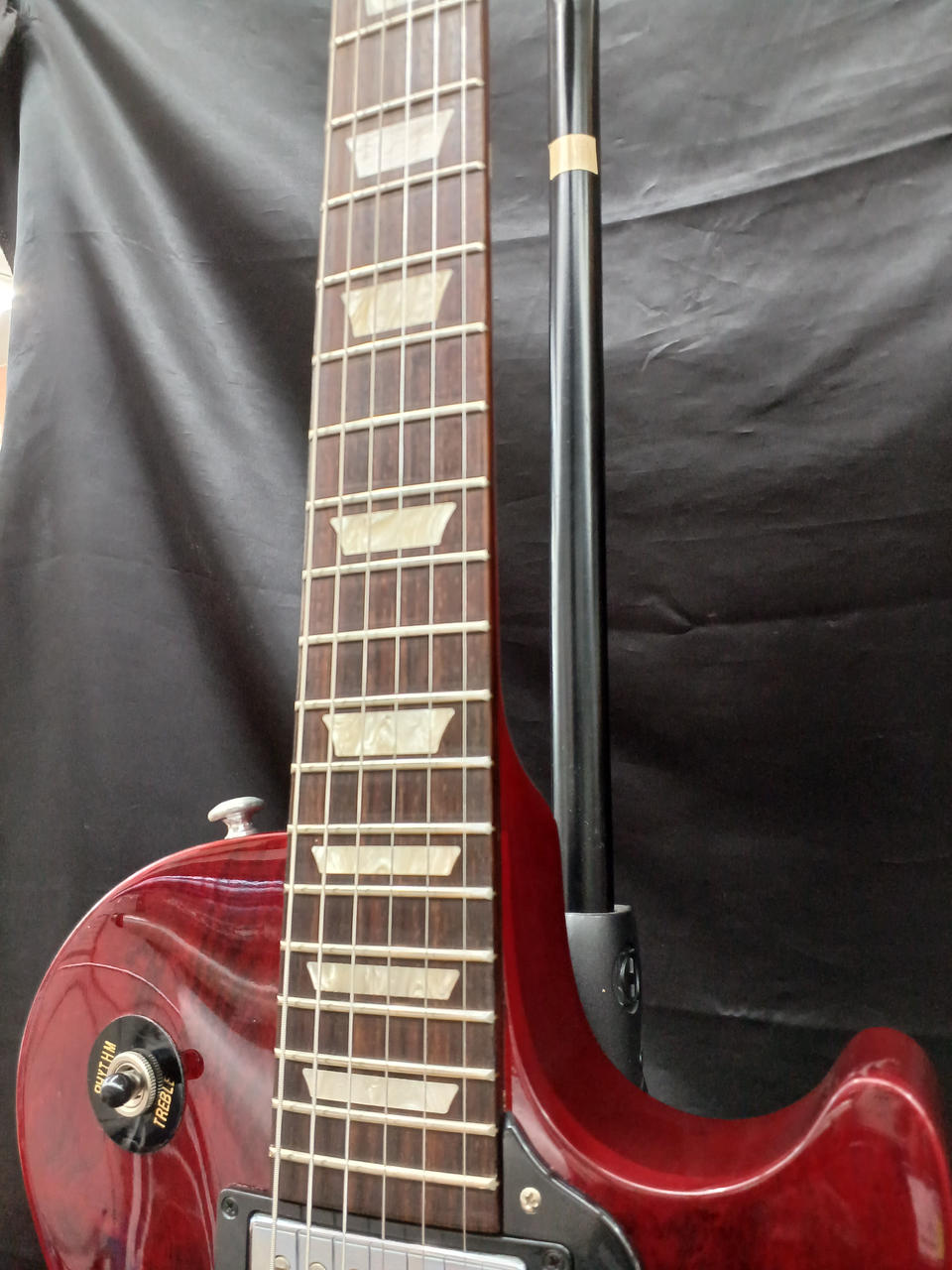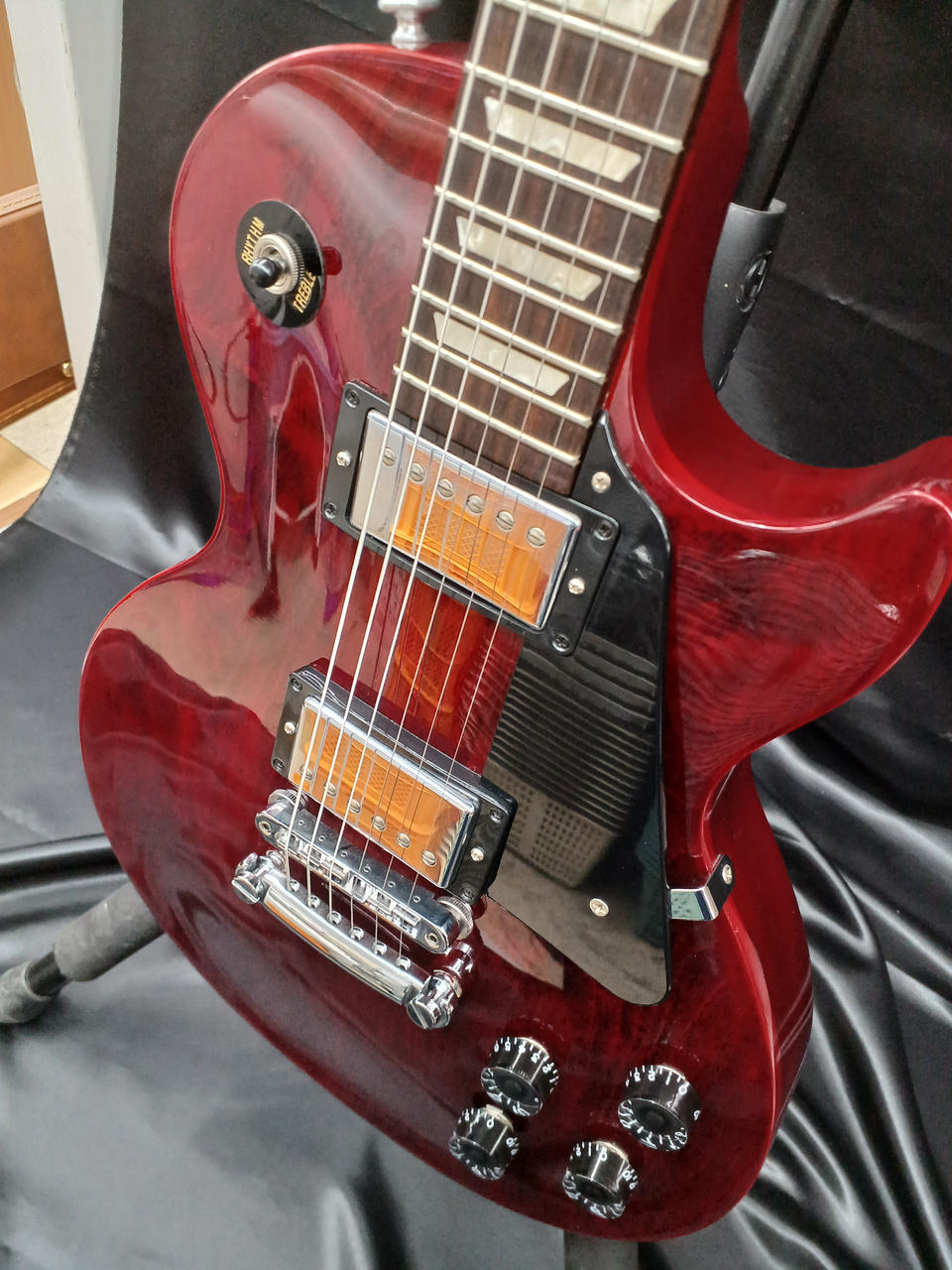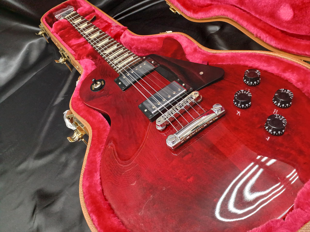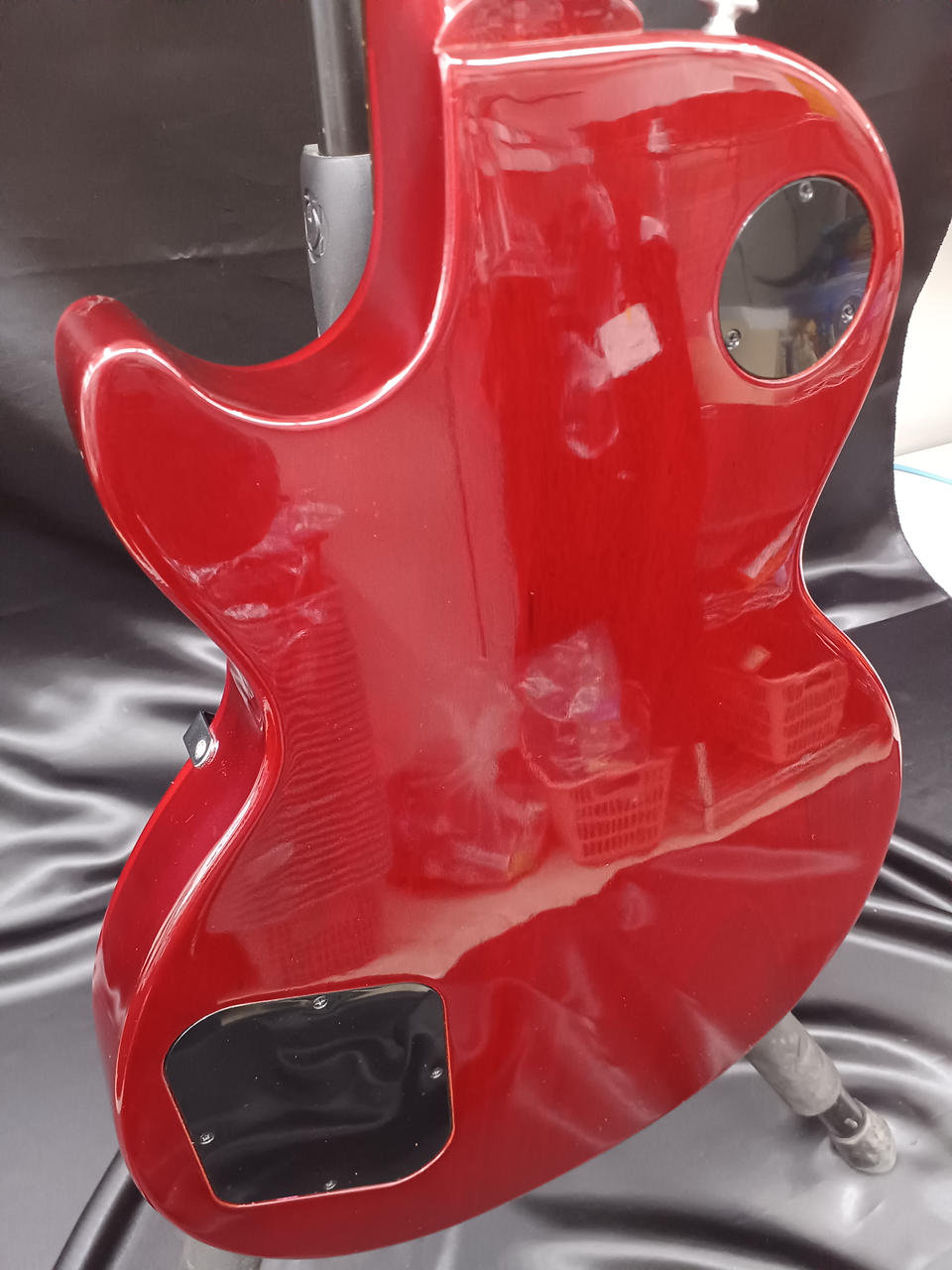 ボディはマホガニー+メイプルトップ構成で、当時のStudioシリーズらしくチェンバード(ウェイトリリーフ)加工。 |