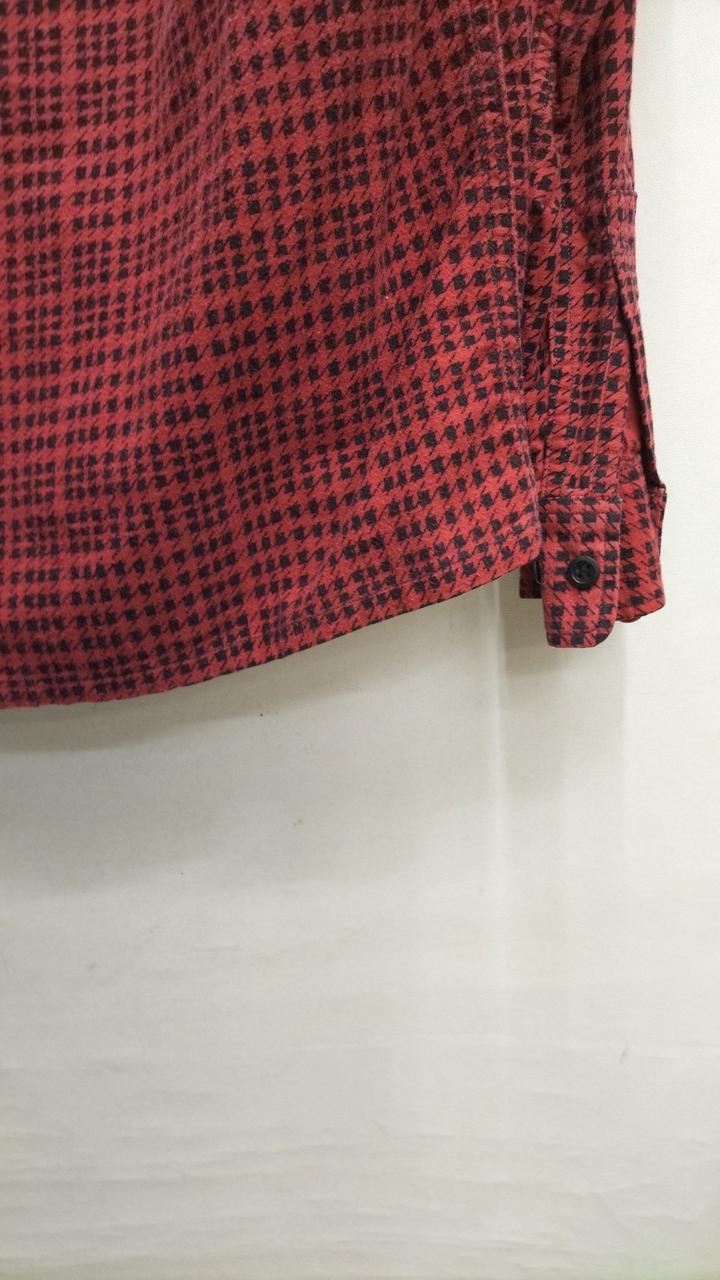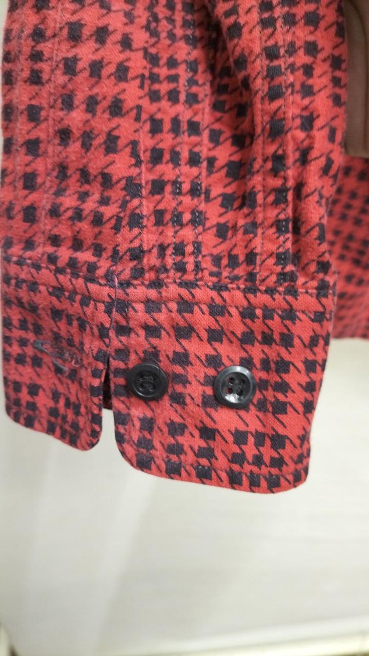 千鳥格子柄のレッドカラー 。ライダースに合わせてコーディネートいいです。