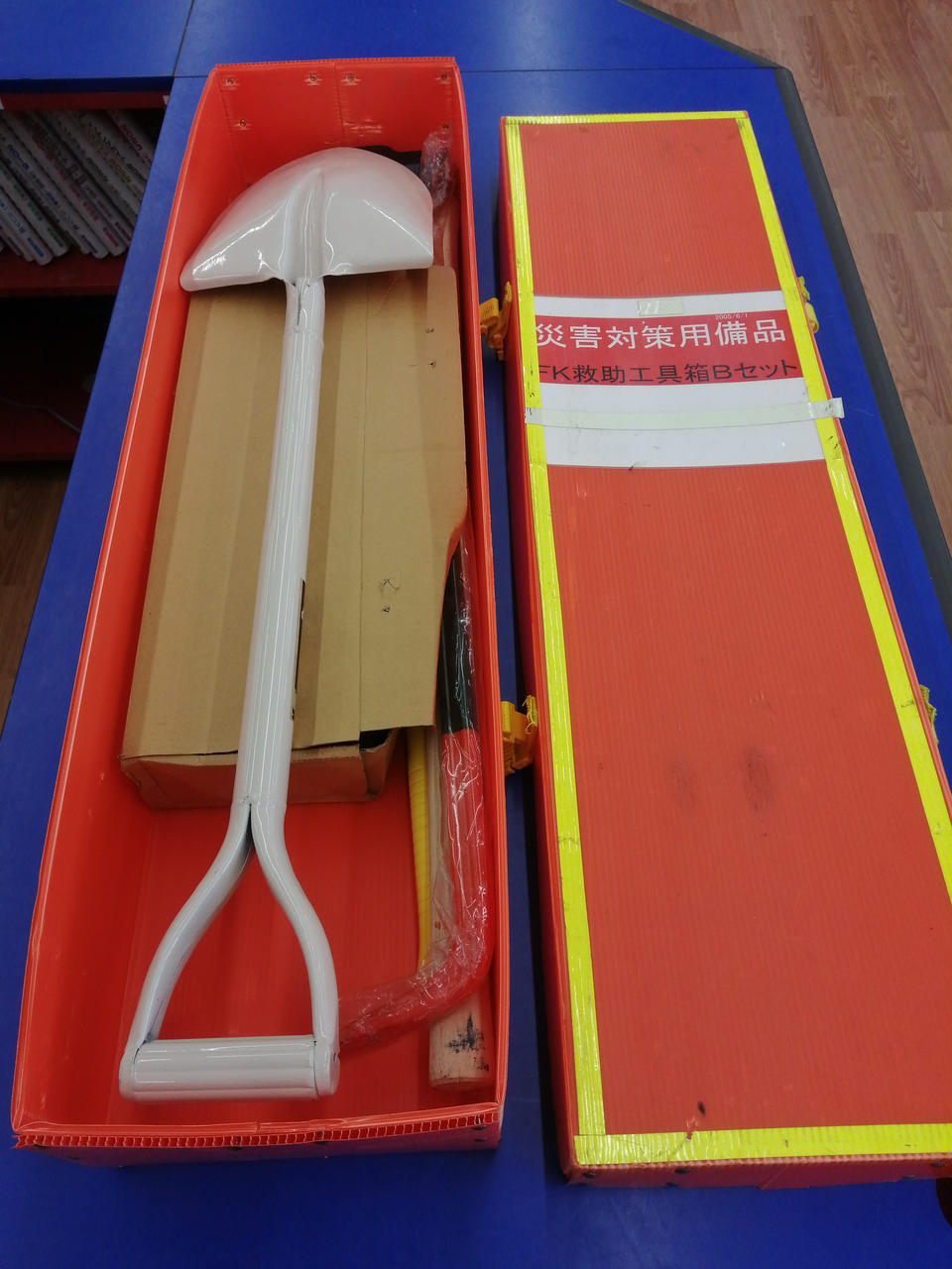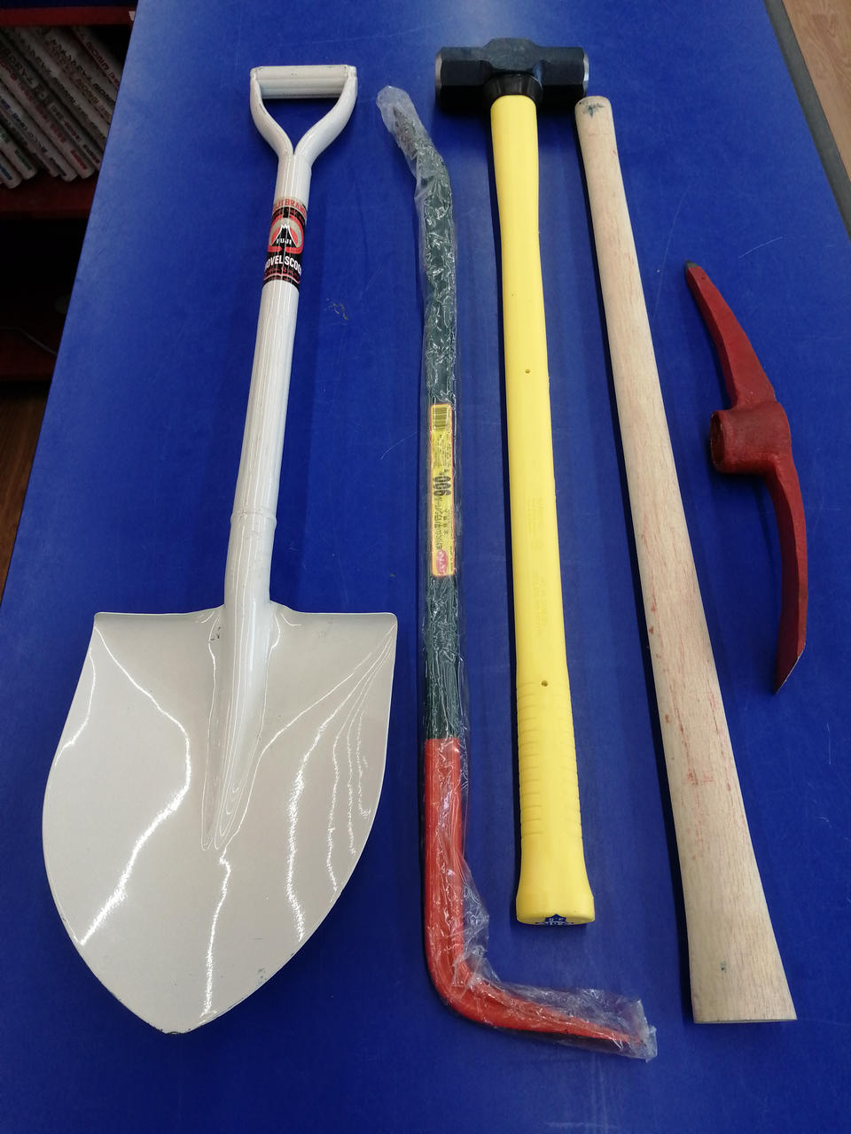 内容品:両口ハンマー(約3.5㎏)/鋸(300㎜)/バラシバール縦型(900㎜)/ツルハシ/アルミボルトクリッパー(350㎜)/パイプ柄スコップ/レスキューアッキス |