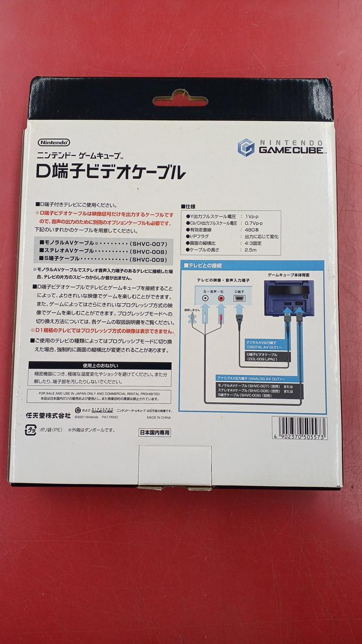 S端子以上の画質が望める、D端子用のビデオケーブル