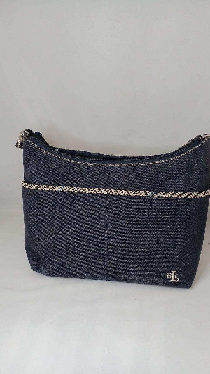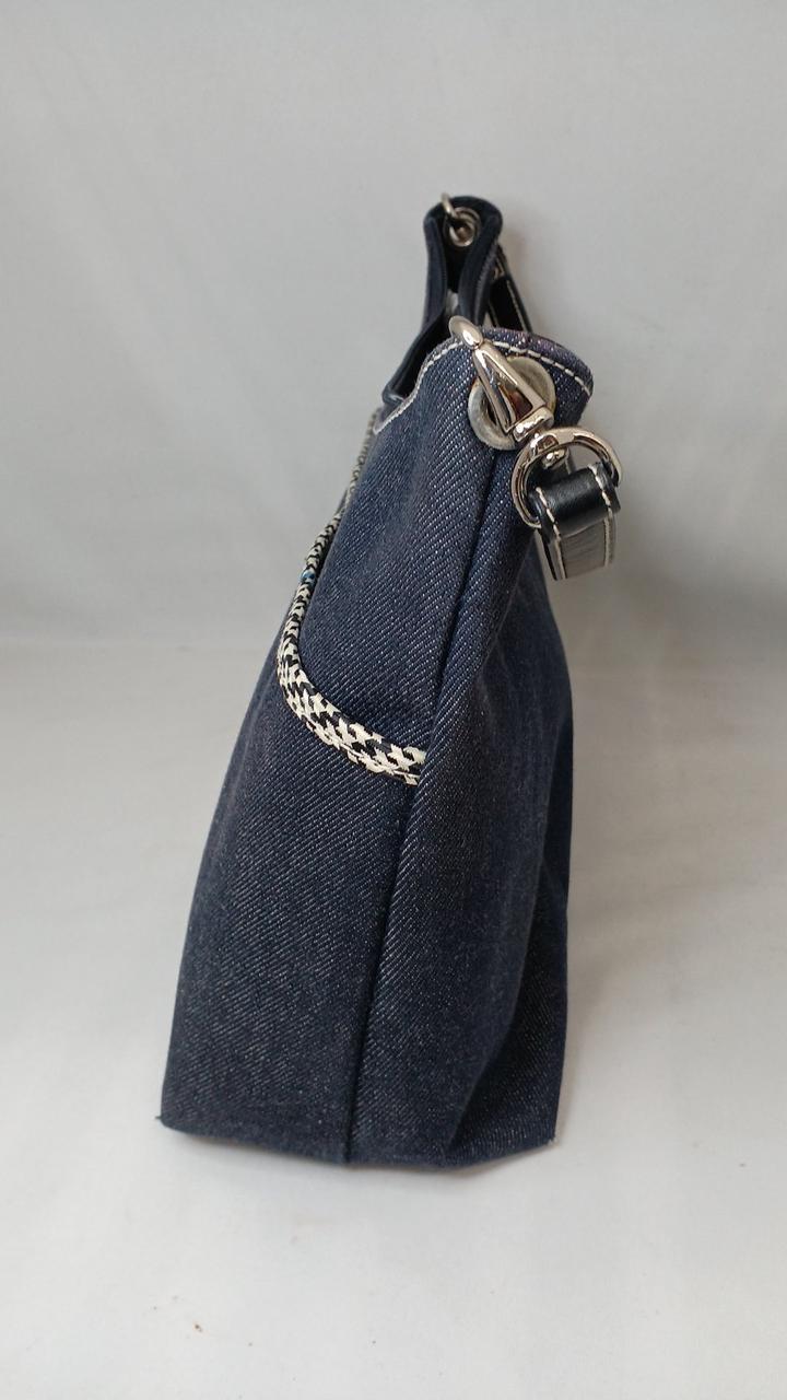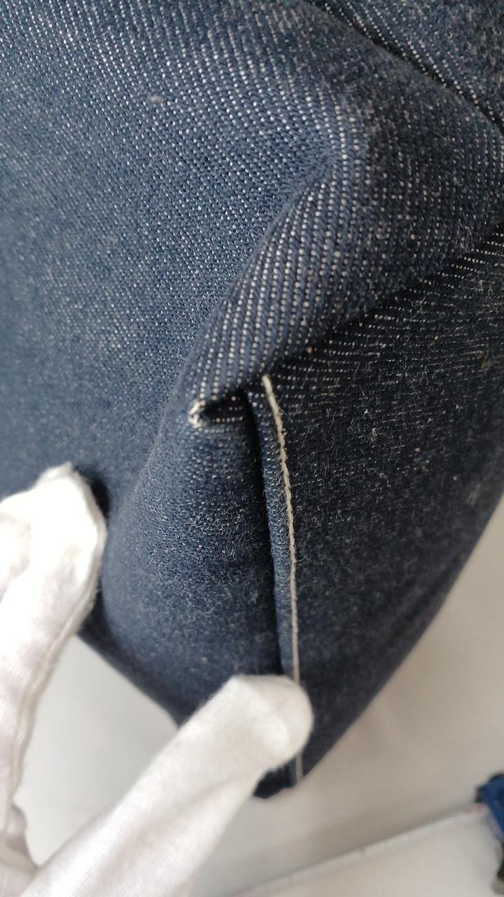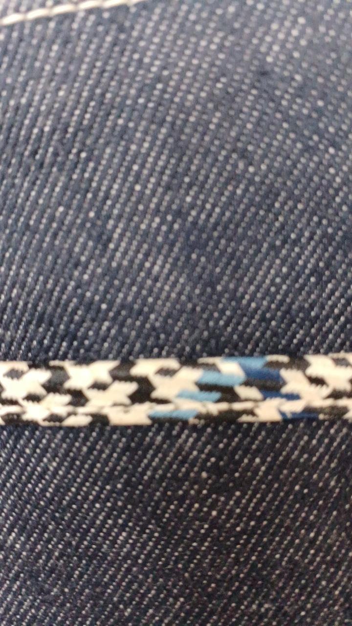 ダークデニム生地に編み込みの様な装飾ラインが入ったシンプルなデザインが人気です♪