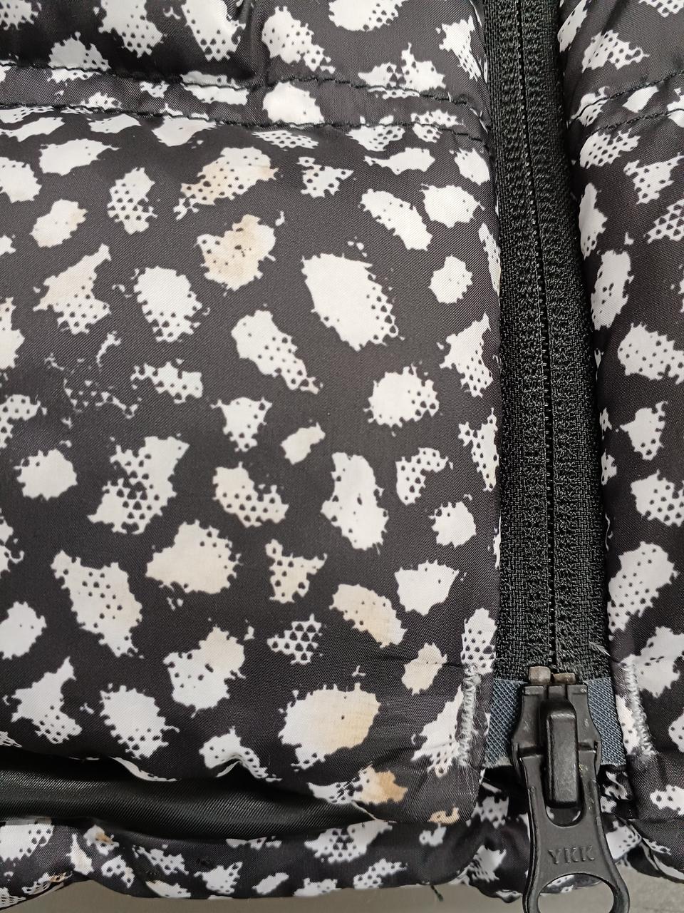 斑模様とジッパーのインパクトのあるデザインと首元の保温性を高めるダブルカラー仕様が魅力です。