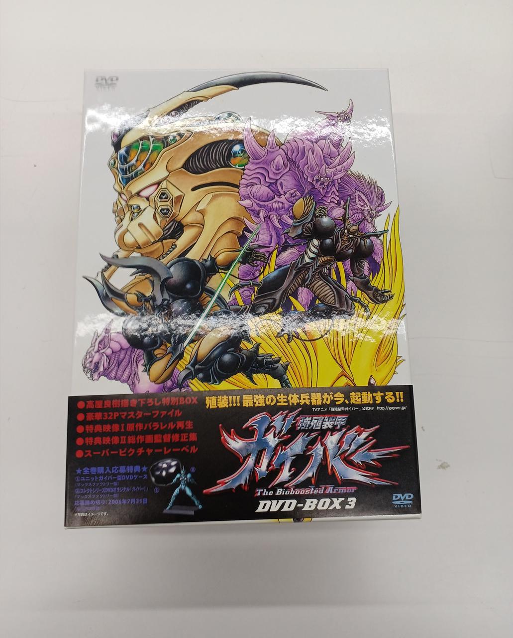 謎の物体に接触したため生体兵器ガイバーに殖装してしまった高校生・深町晶が、世界征服を企む秘密結社クロノスに立ち向かっていく。 |