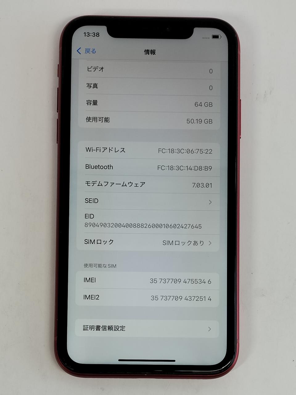 カメラ画素メイン:12MP サブ:7MP 電池容量:88% IMEI:◯ |
