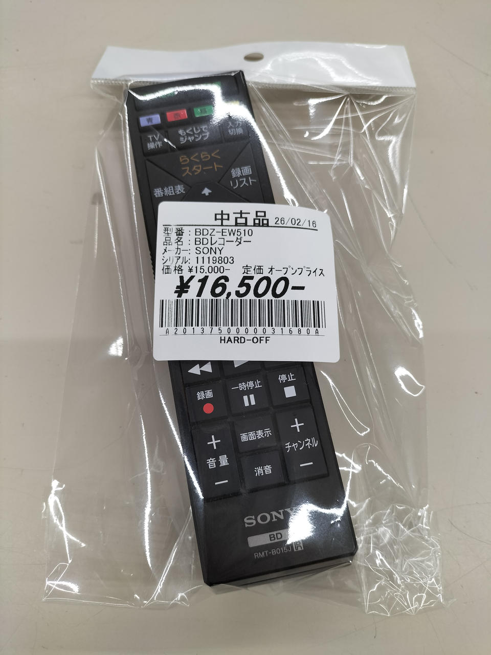 付属品:リモコン |