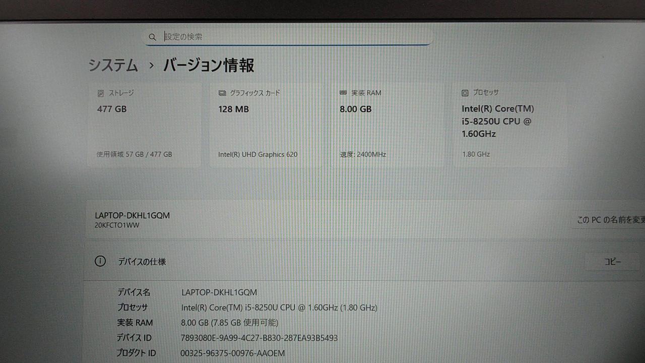 Core i5-8250U 1.6GHz |