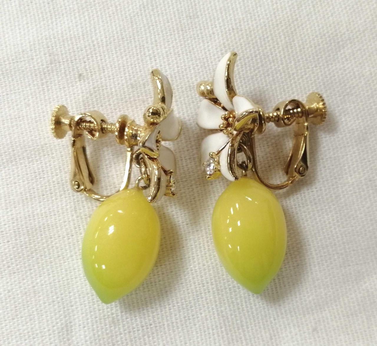 フラワー×レモンデザインを採用した華やかなイヤリングです! |