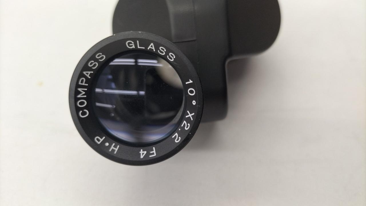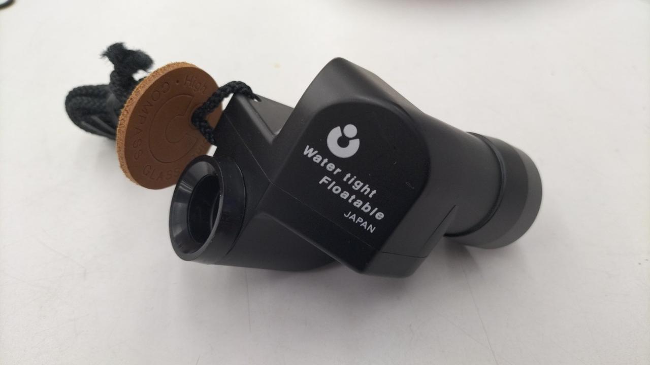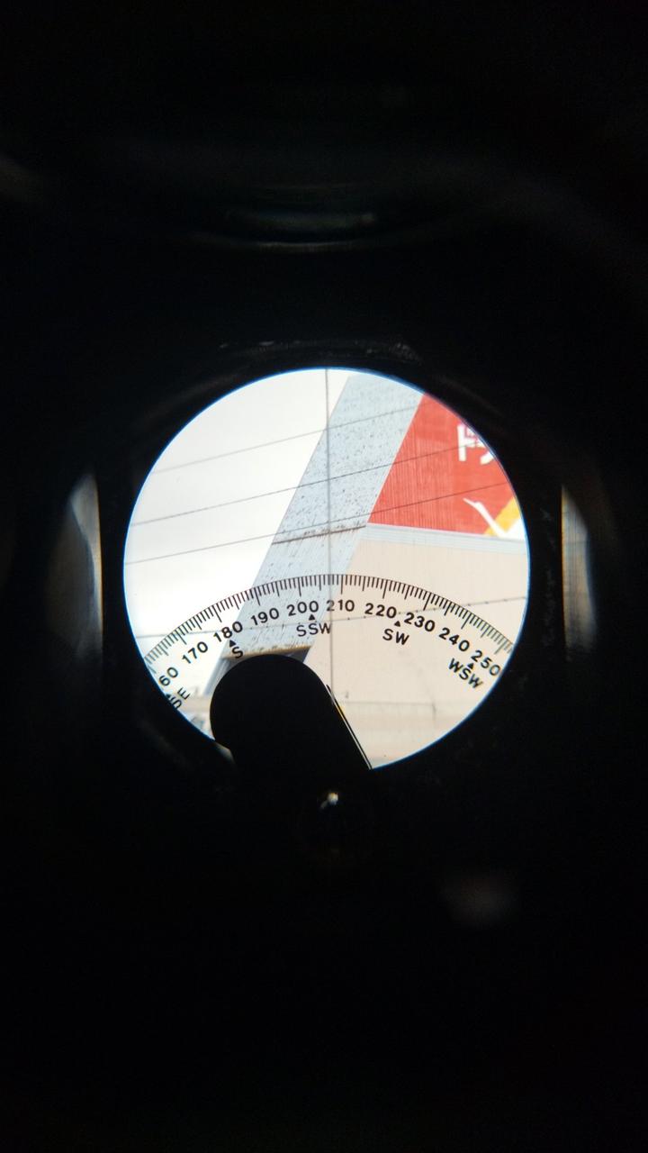 目標を覗きながら方位を読み取るコンパスグラス |