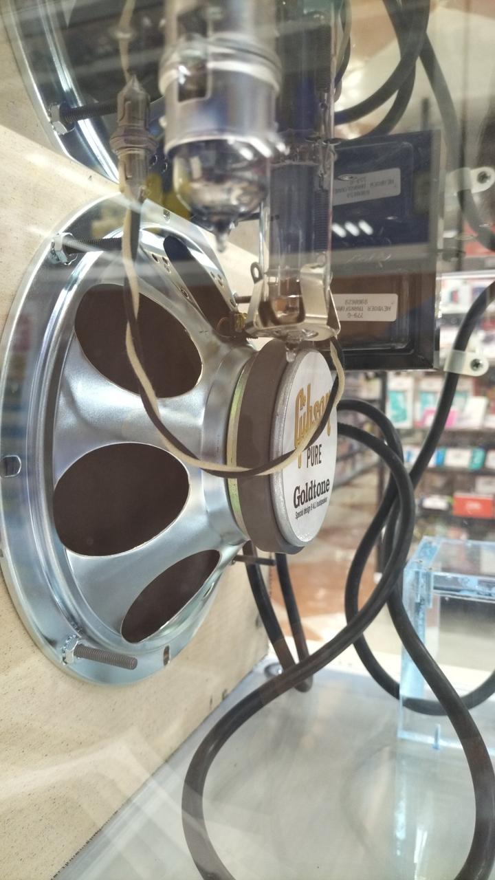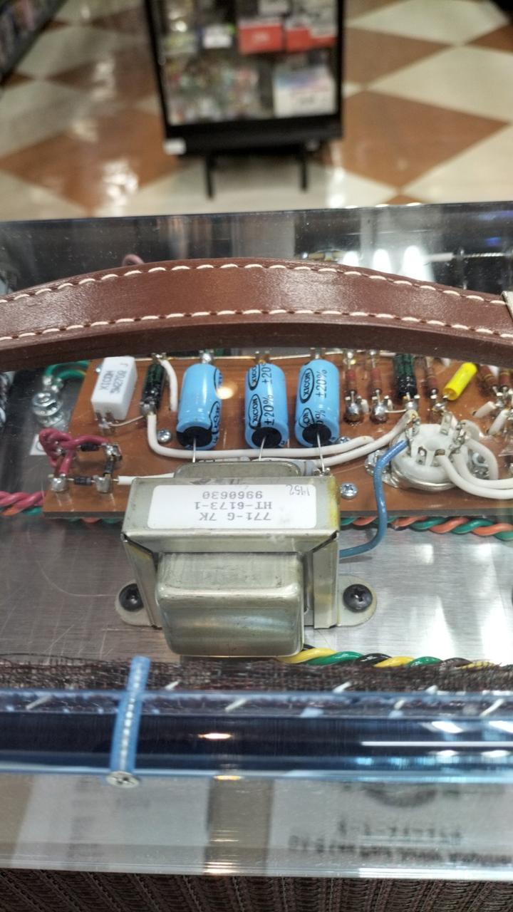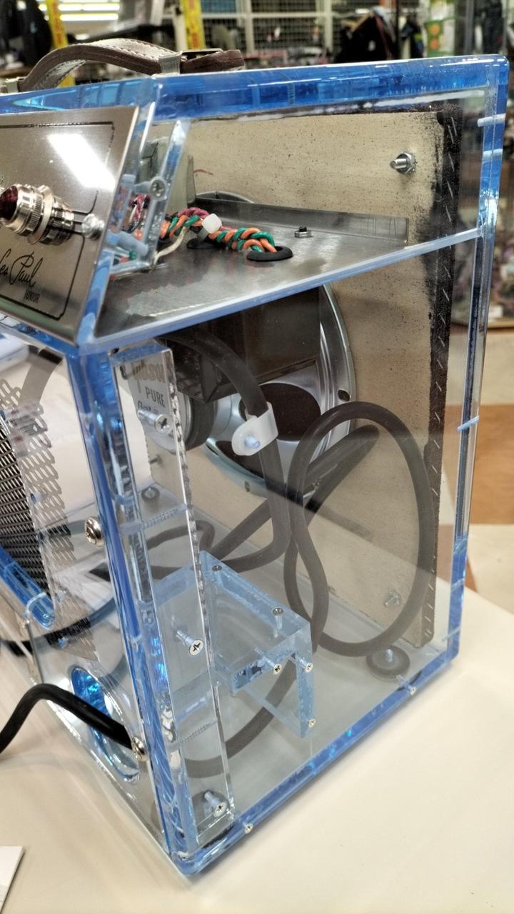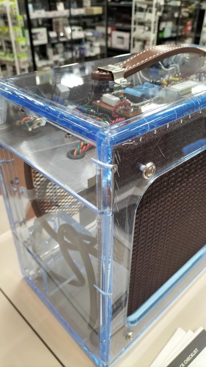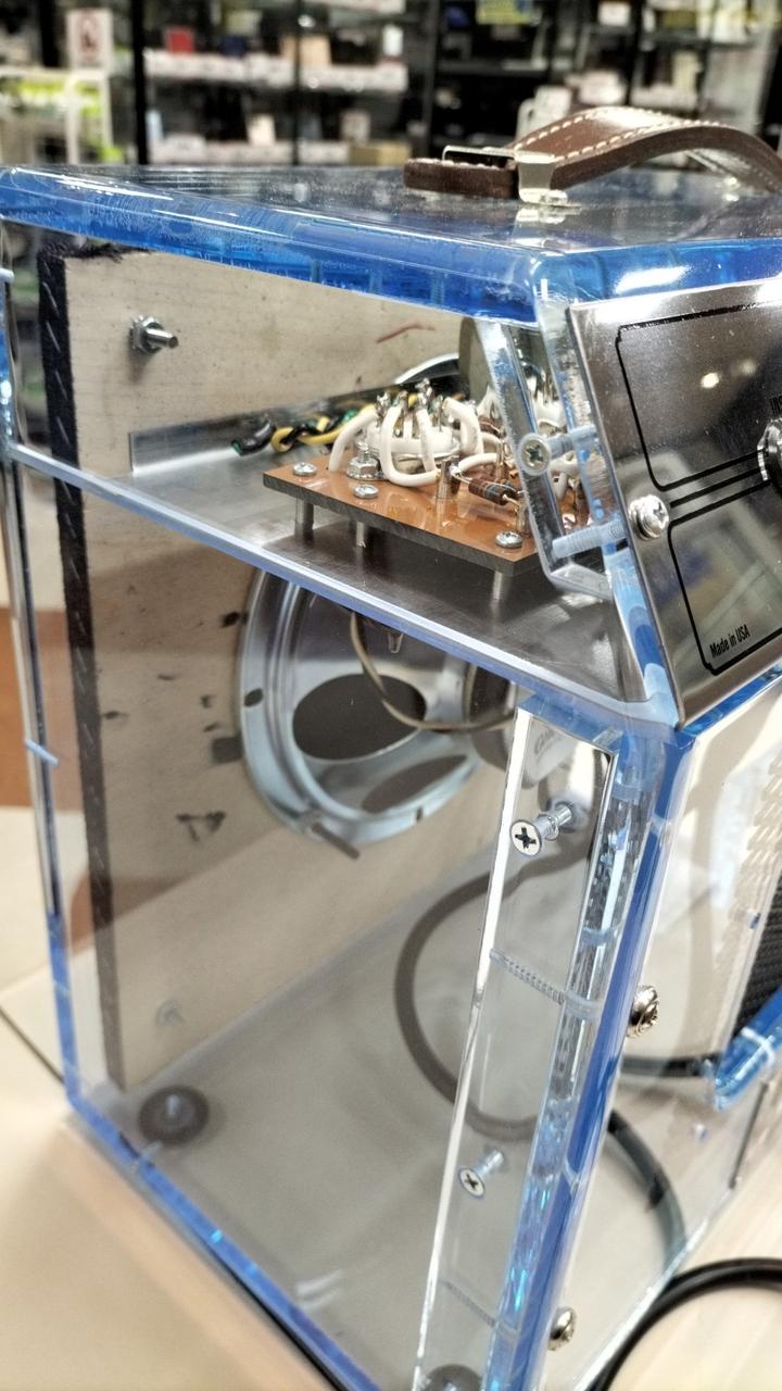 知る人ぞ知るレアアンプ、世界限定250台の幻のプレキシグラスGA-5タイプの2000年復刻モデルの一台、真空管使用のギタ-用小型アンプです。 出力:5Wですが、家庭用としては十分なほど、力強い音を奏でます。 |