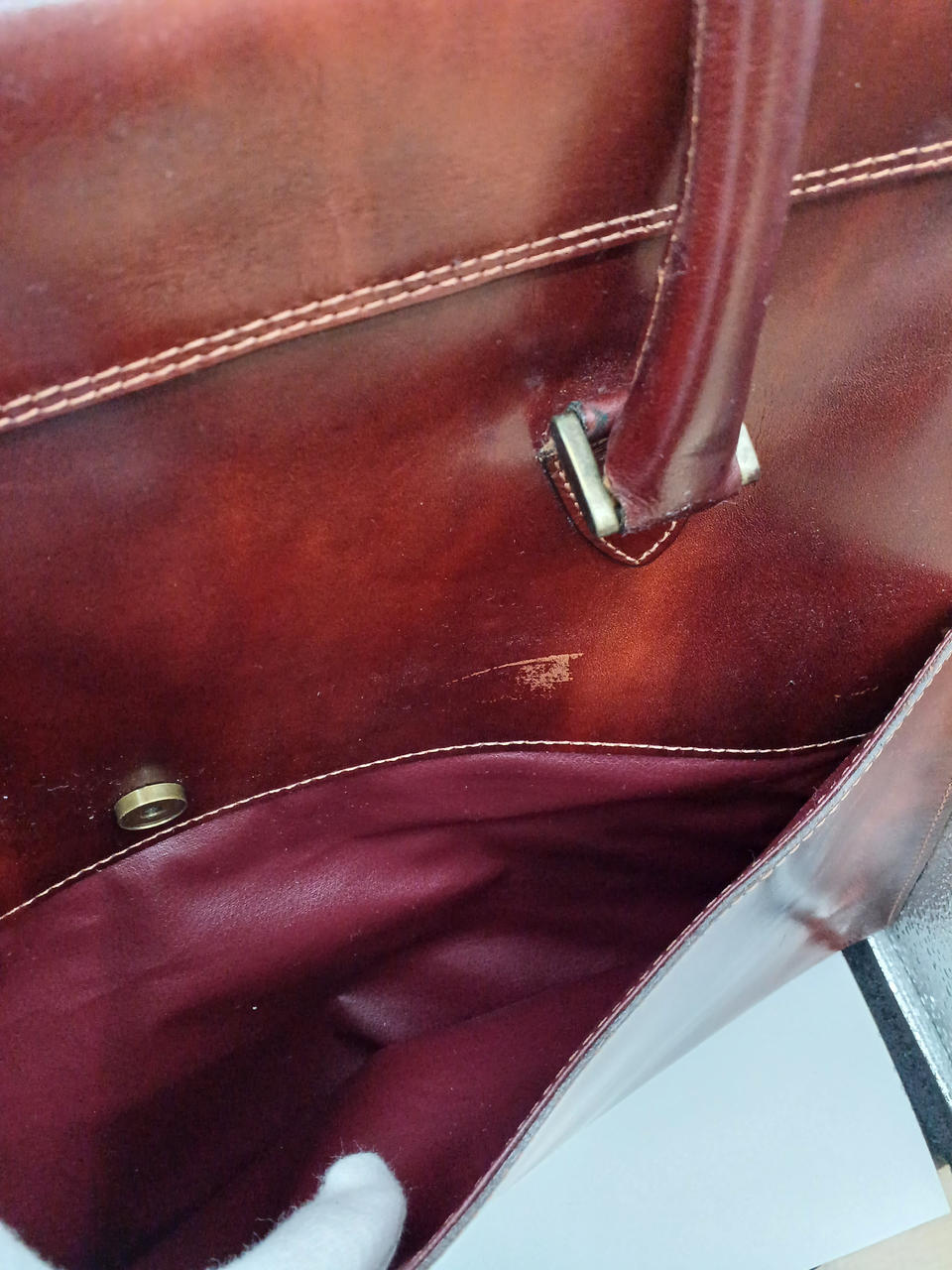 あまり使用されず、保管されていた商品のため、シワが寄っていたり張り付いた跡などがございます。 |