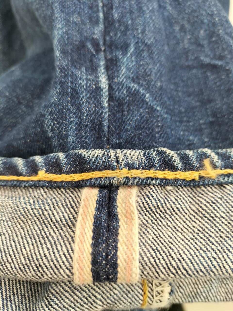 BONCOURAの赤ミミデニムです!使い古した感じがとても魅力的です!