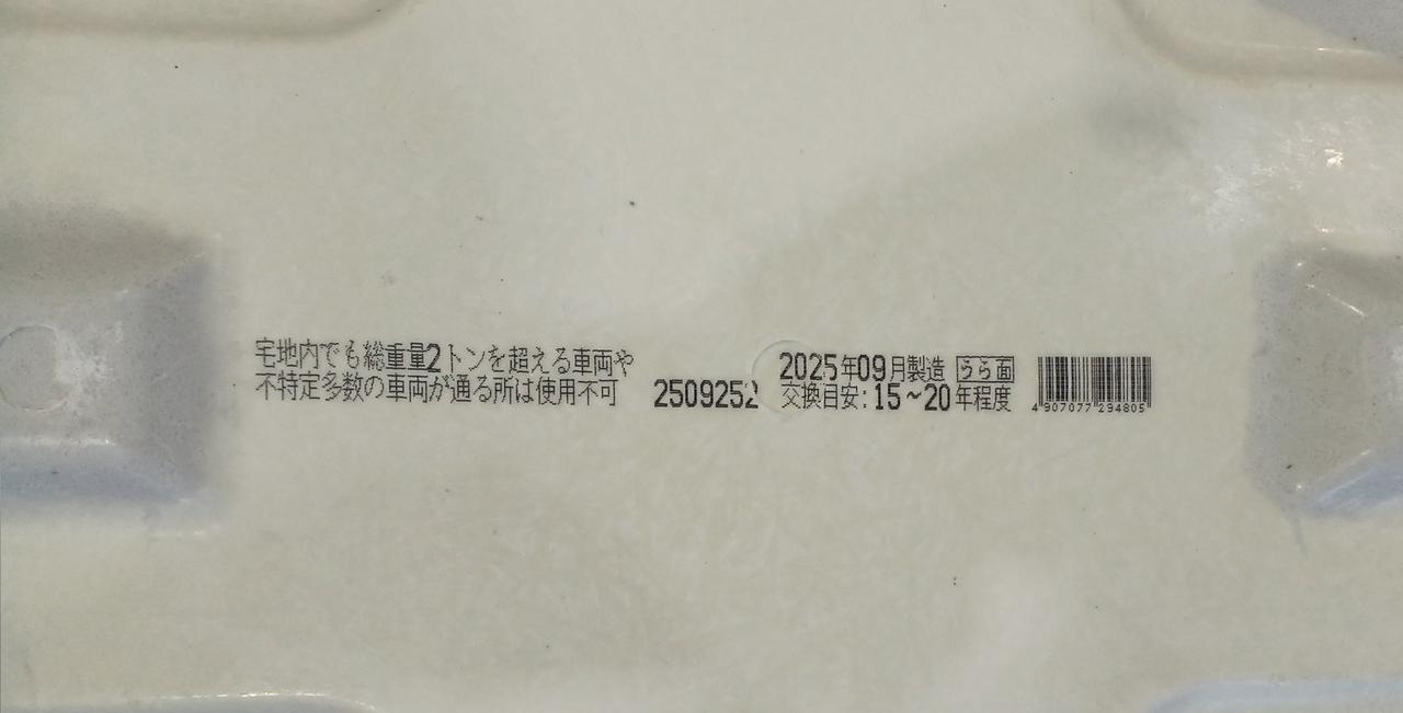 屋外排水ます用蓋、普通乗用車用駐車場に |