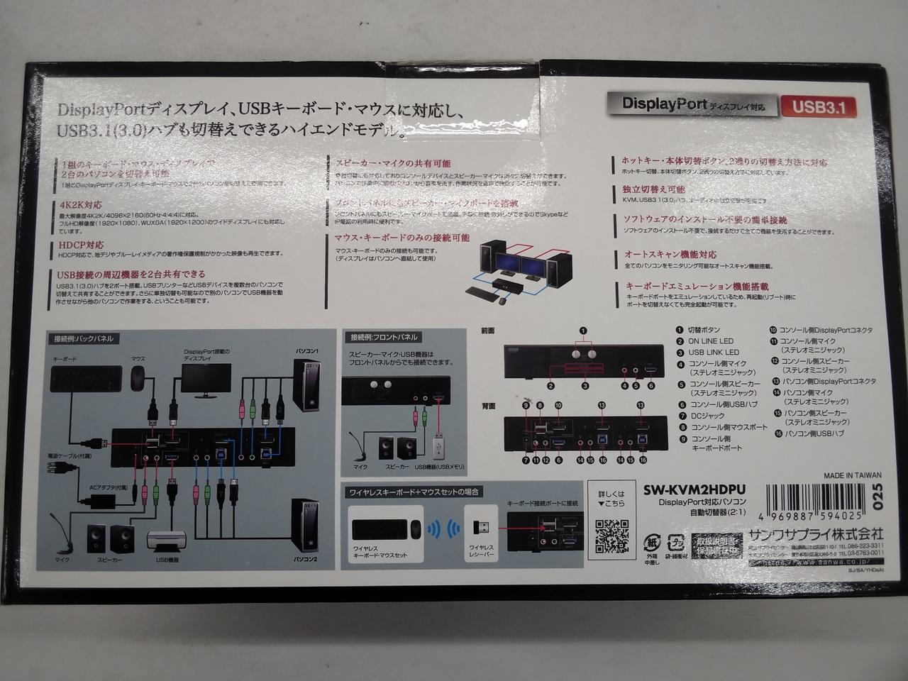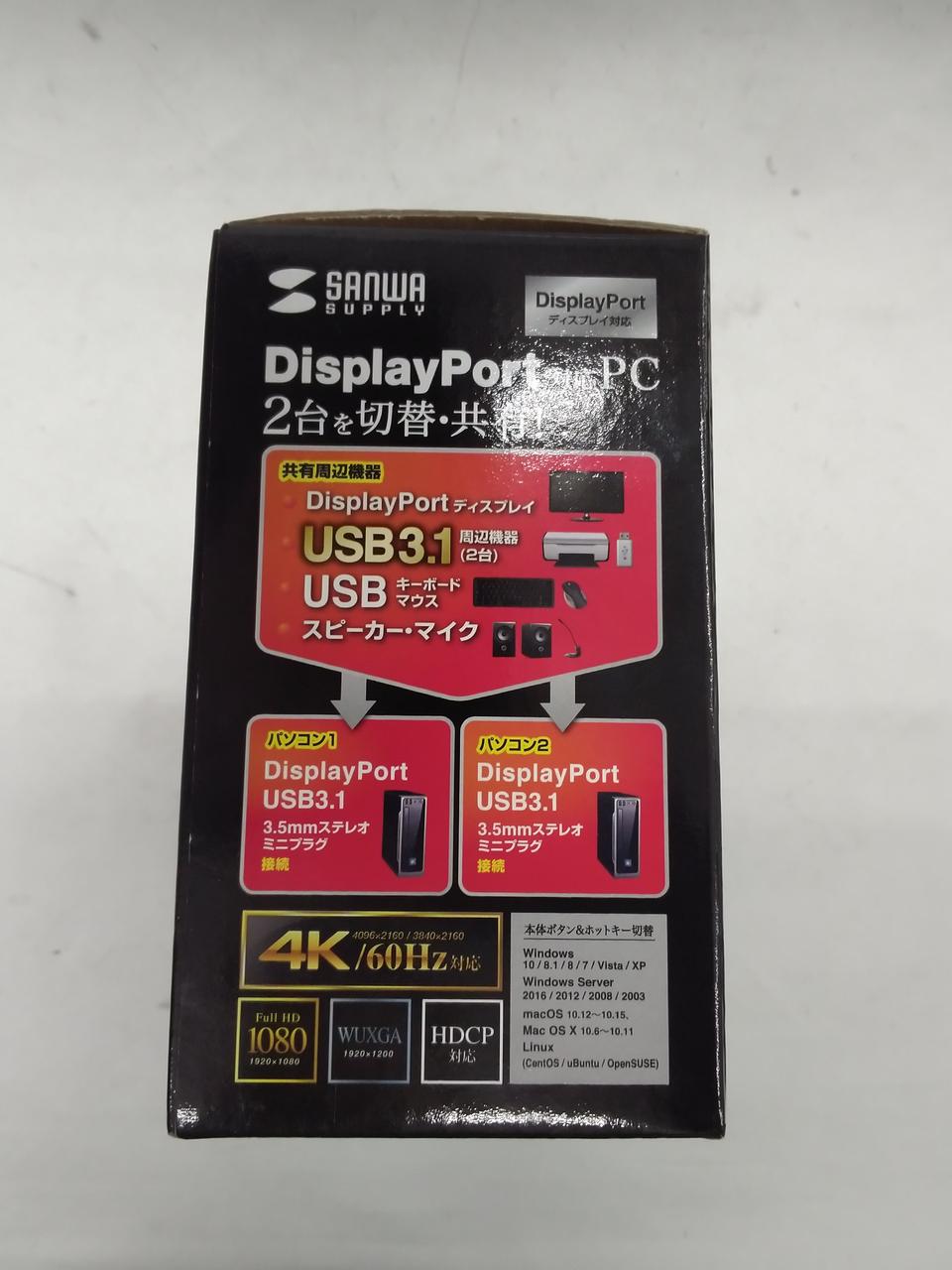 1組のDisplayPortディスプレイ・USBキーボード・USBマウスで2台のパソコンを切り替えて使用できます。 |
