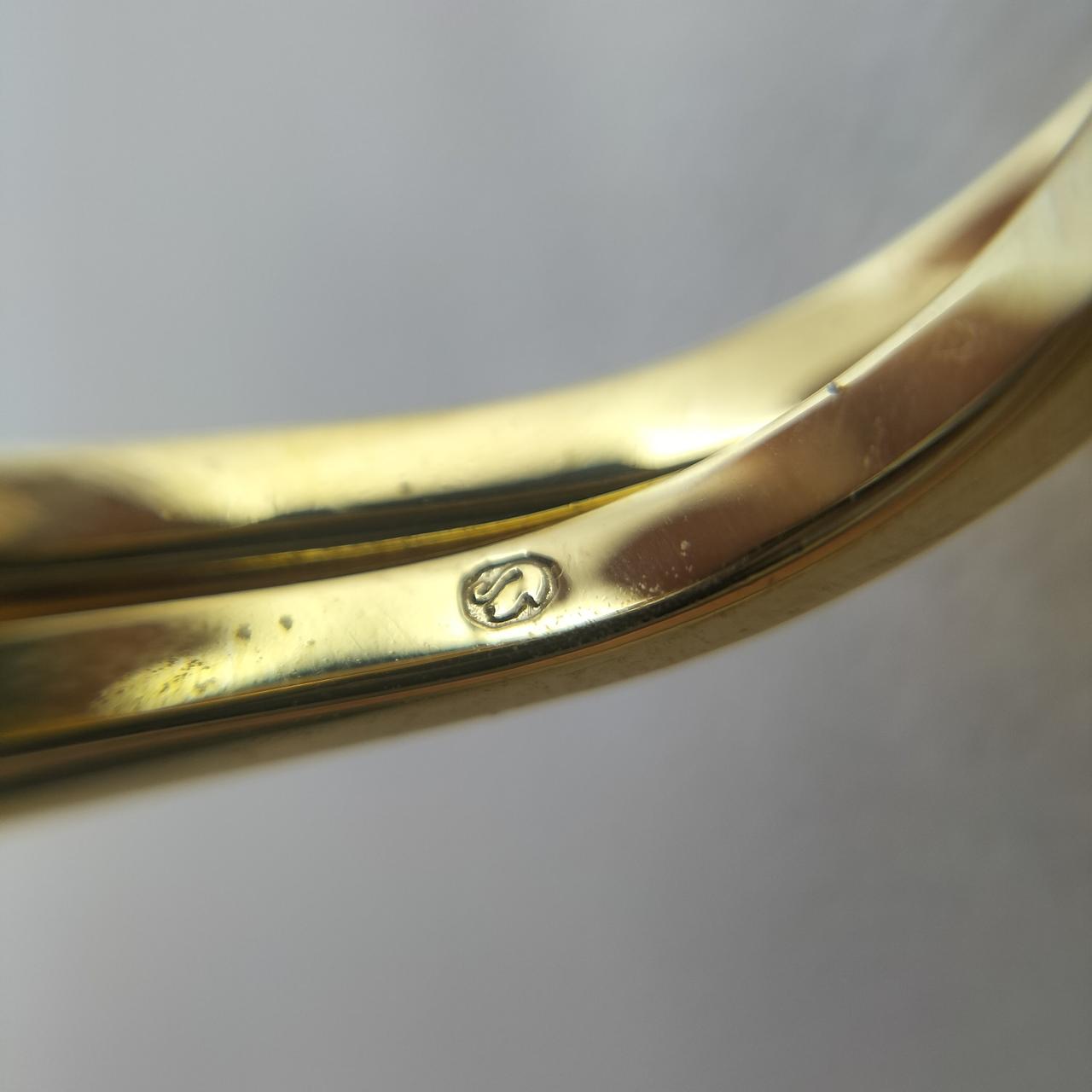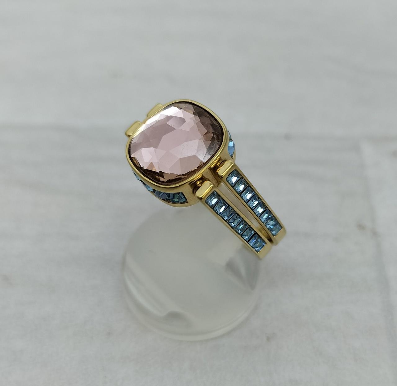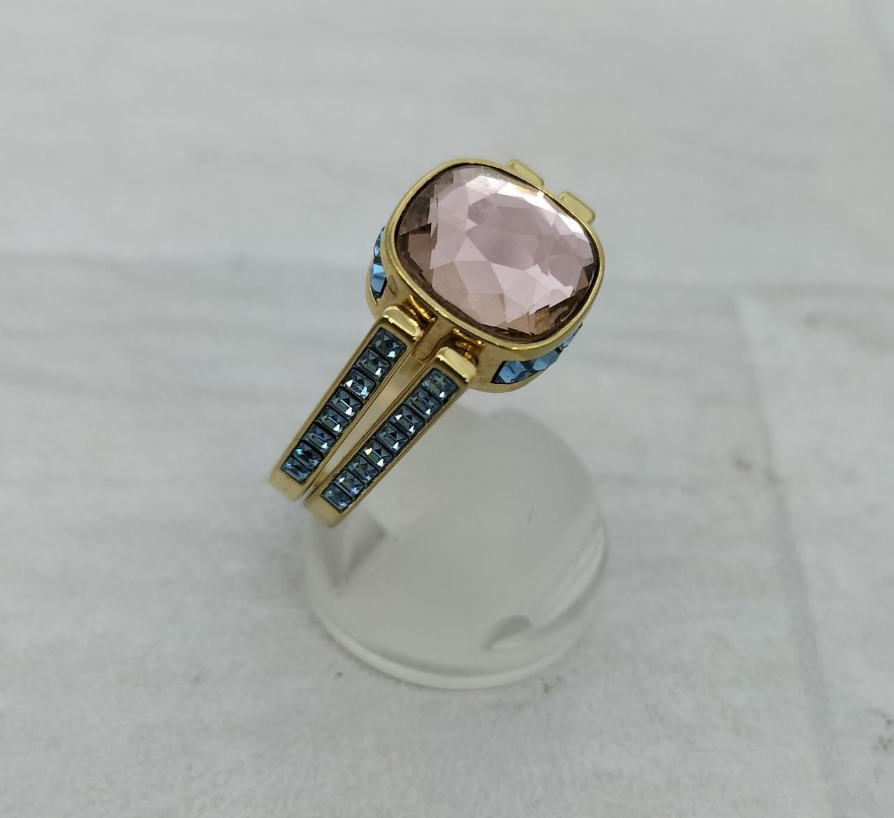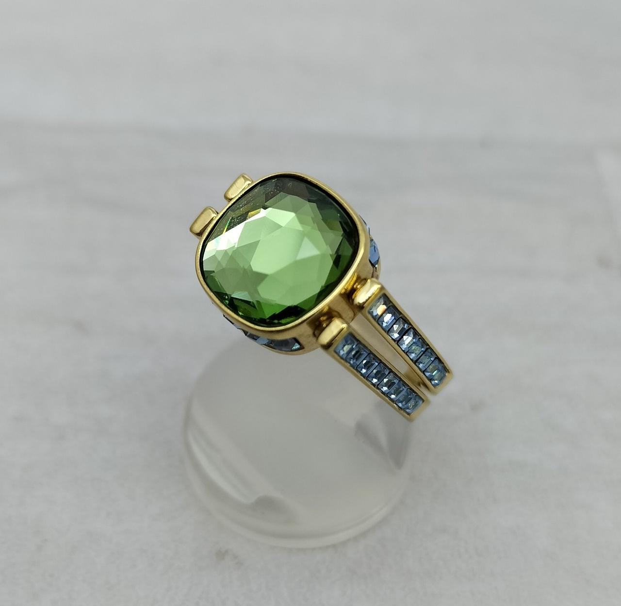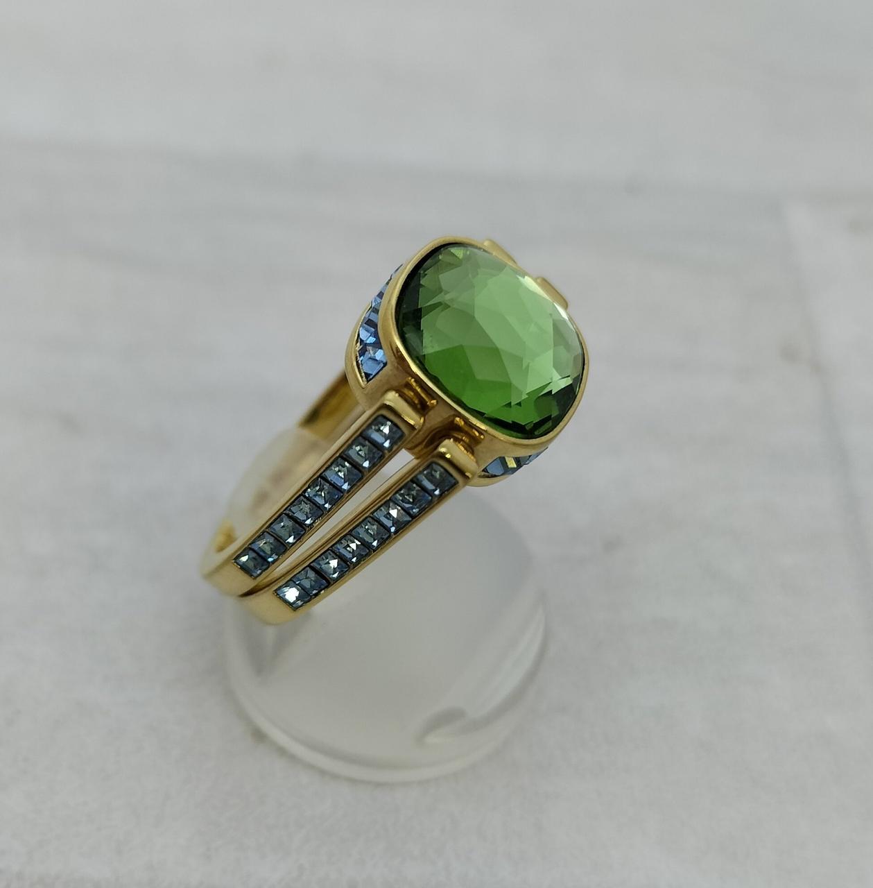 ゴールドトーン・プレーティングのシャンクの中央にはグリーンのSwarovski ReCreated™ crystalがあしらわれ、回転させると反対側のピンクのクリスタルに簡単に付け替えられます |