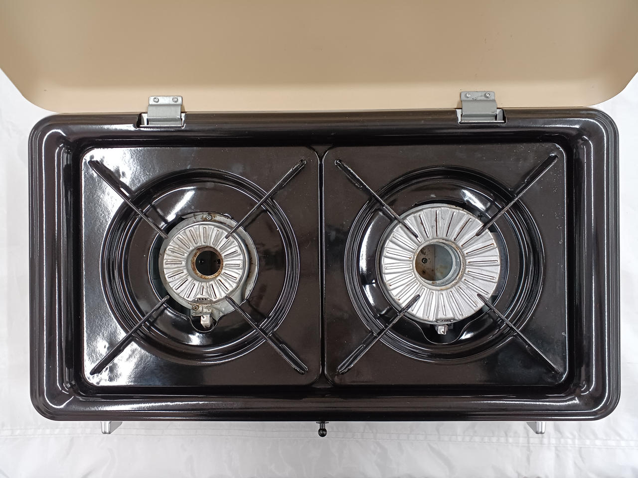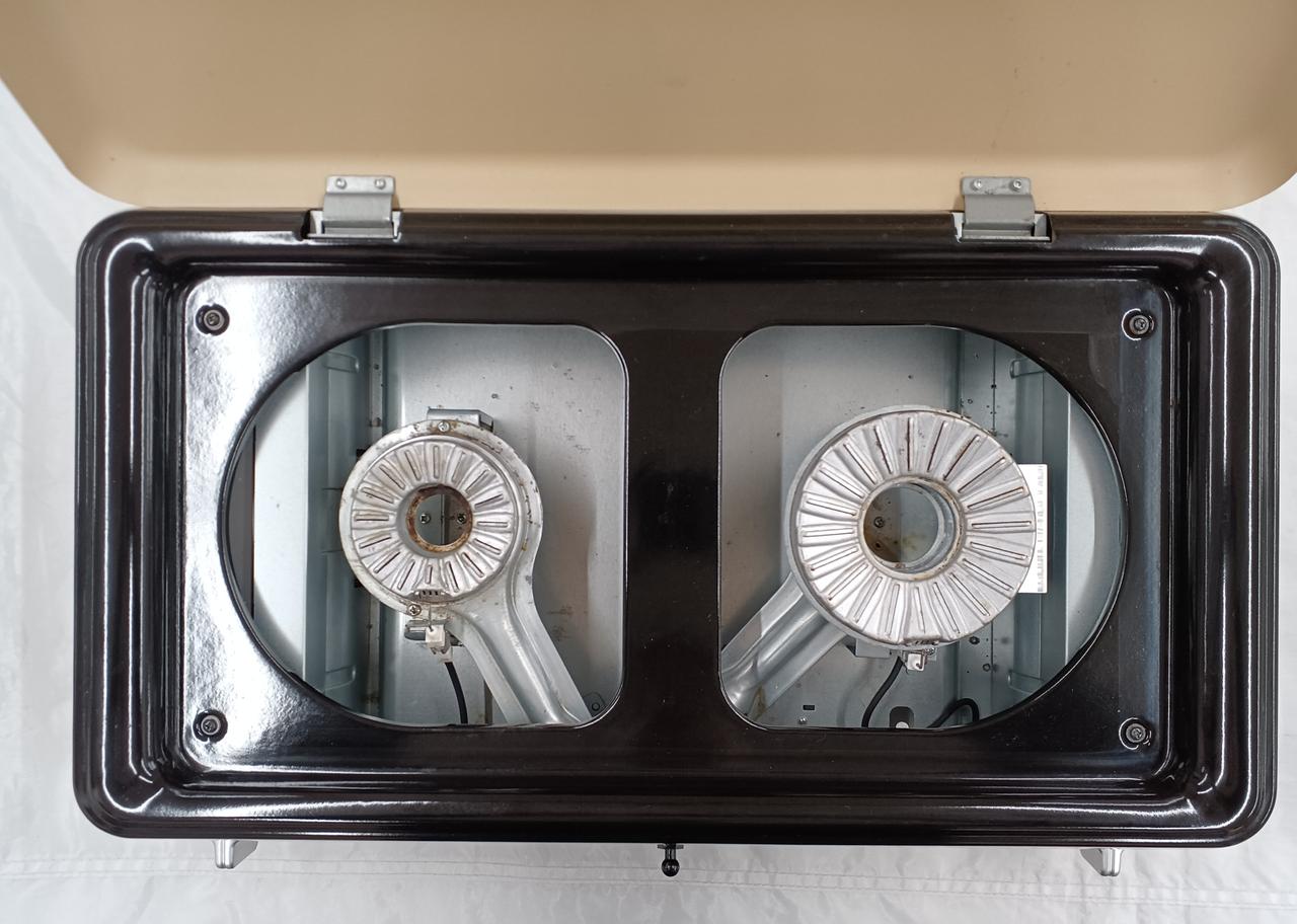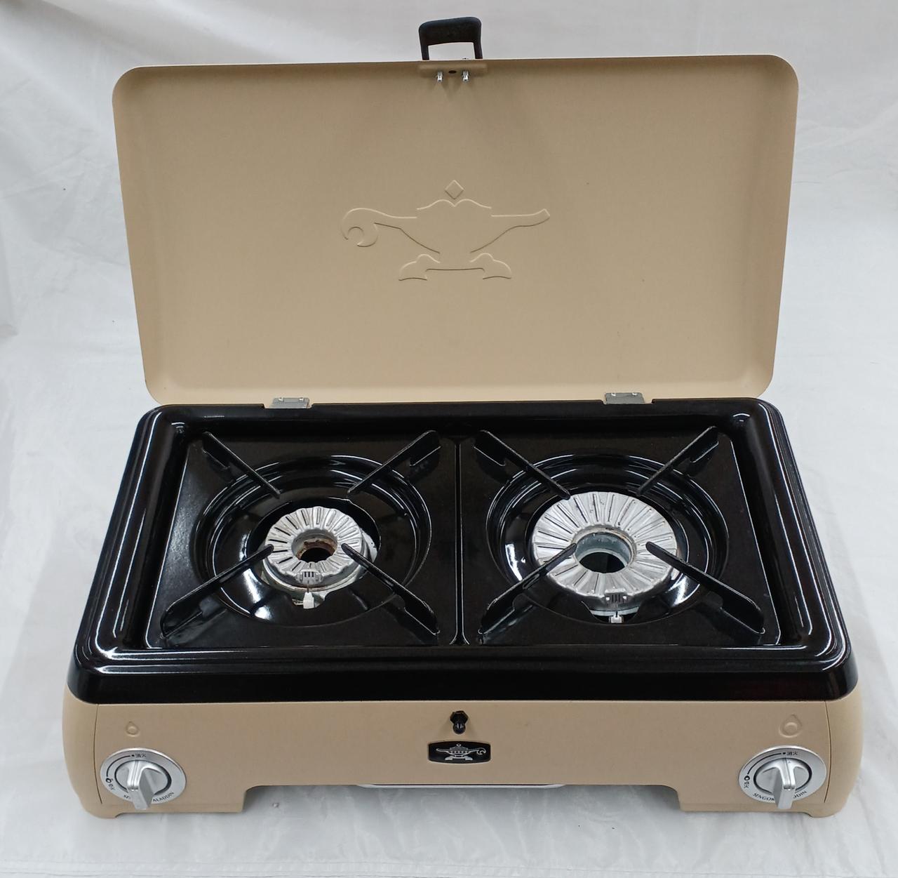 食卓、ベランダ、キャンプ場さまざまな場所で使える バーナー右でグリル料理、バーナー左でスープの保温など高火力からとろ火まで料理に合わせた火力調整が可能です。 |