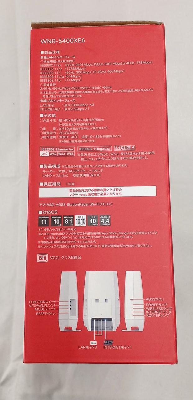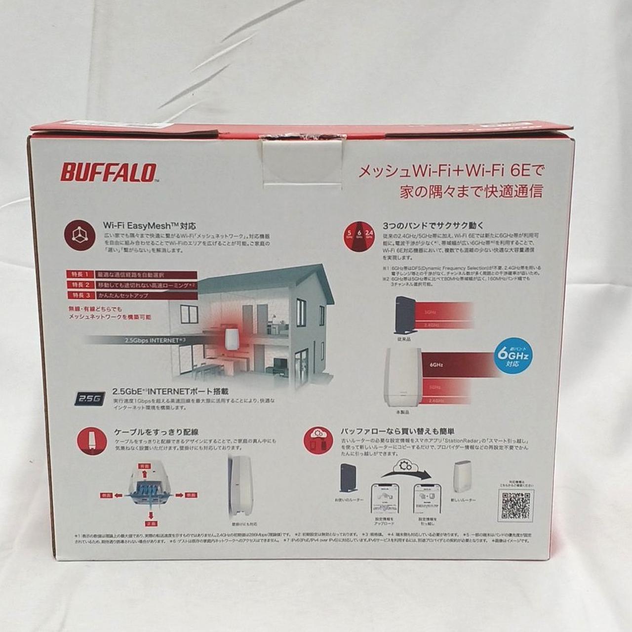無線LAN規格:Wi-Fi 6E (11ax) 接続環境:30台/10人 メッシュWi-Fi:○ 周波数:2.4/5/6GHz IPv6:○ セキュリティ規格:WPA/WPA2/WPA3/WEP |