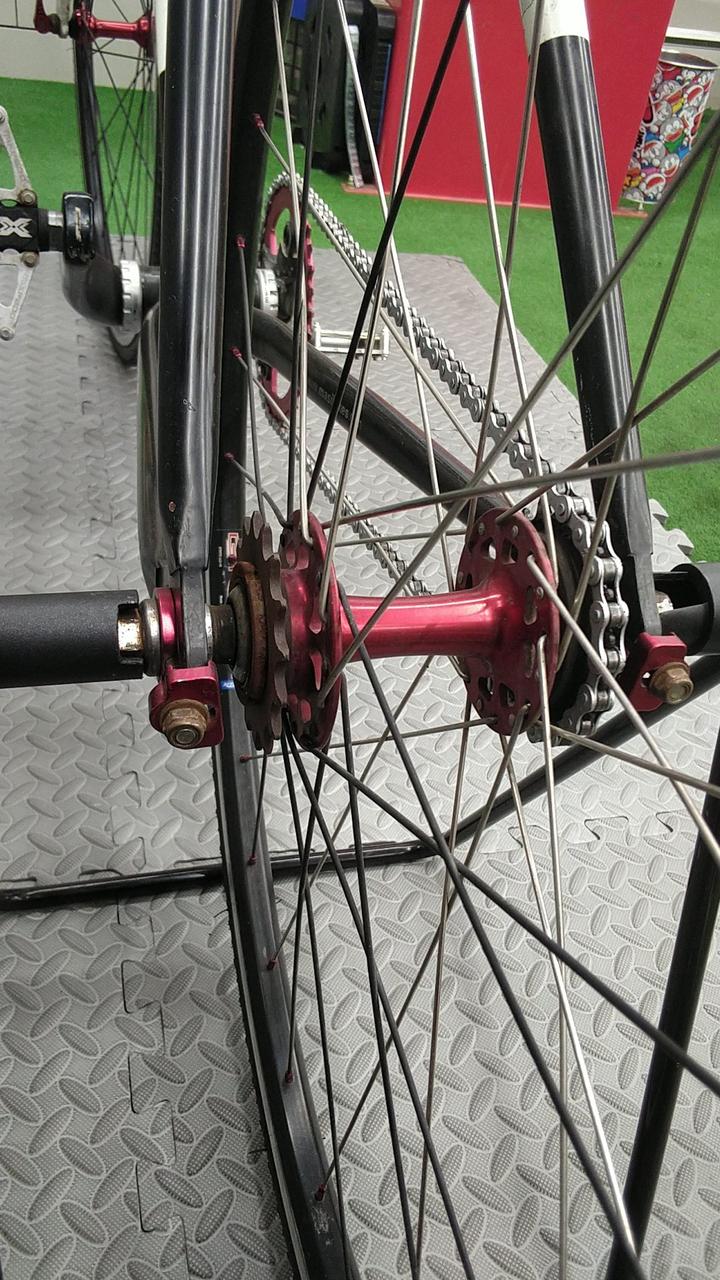 ピストバイクなのでリアリムの使用していない方に固定スプロケが装着されています!