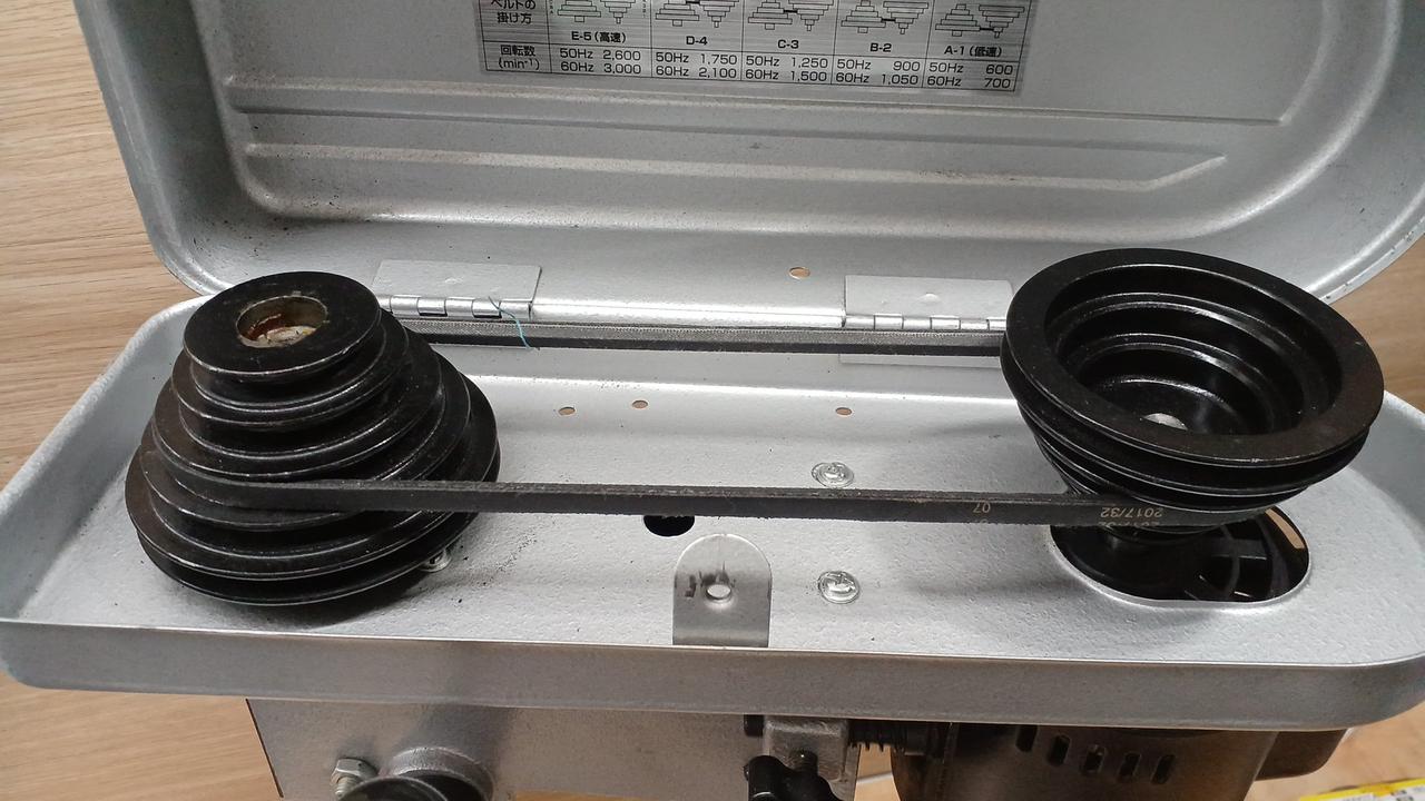 回転速度5段階調整機能付きです(ベルト掛けかえ)。 |