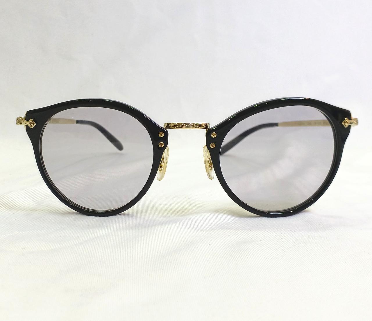 黒縁、金、レンズ部分紫