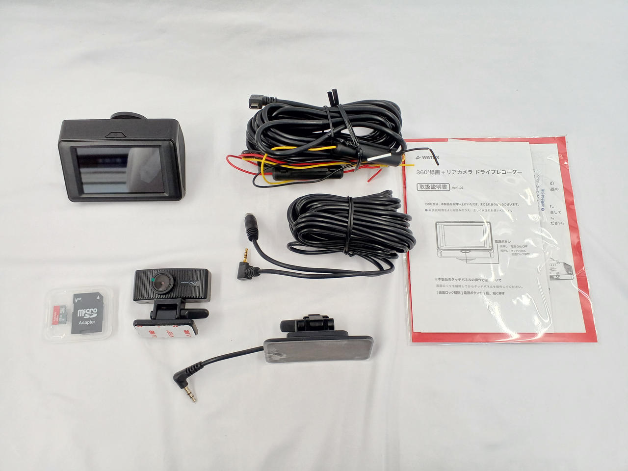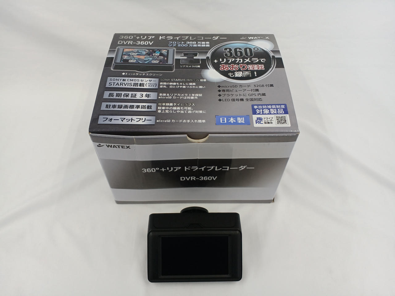 全方位360°録画を3インチ液晶搭載+リアカメラ付き miroSD 32GB付属 配線直結タイプ※シガーソケット使用不可。 |