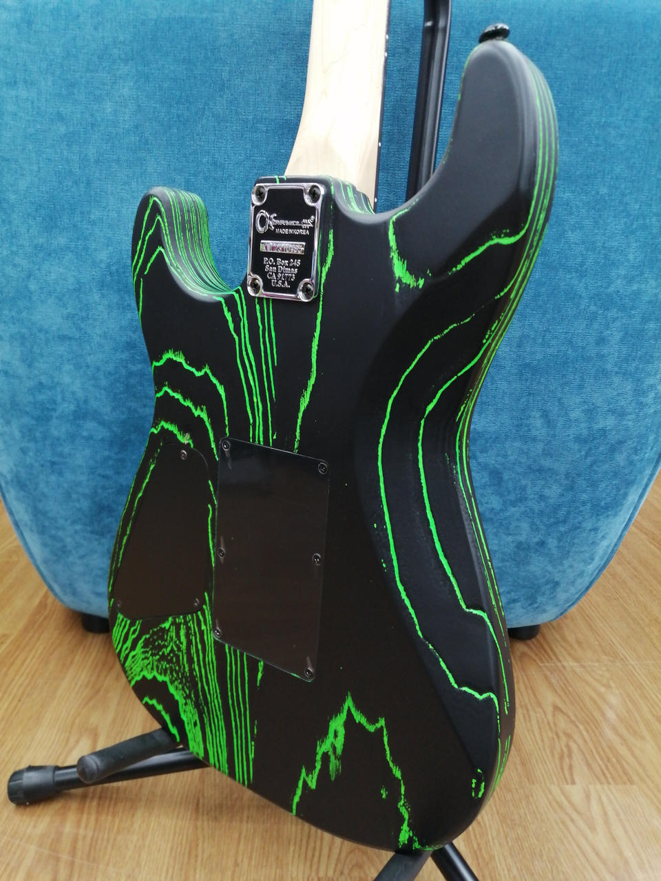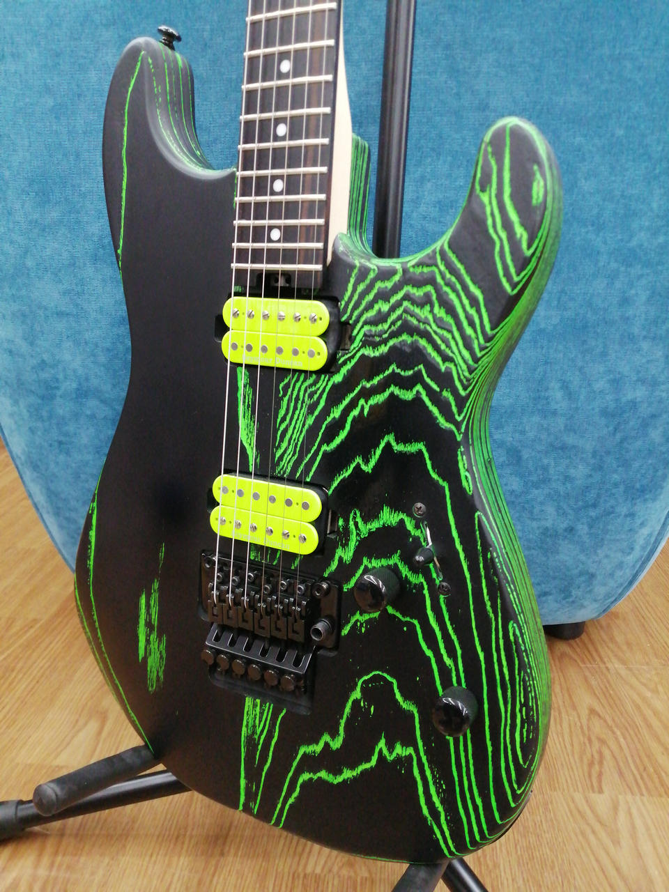 アッシュの木目に蛍光色が流れ込んだような独特のフィニッシュで、若い方にはゲーミングデバイスのようなカラーリングで馴染あるかもしれません。 |