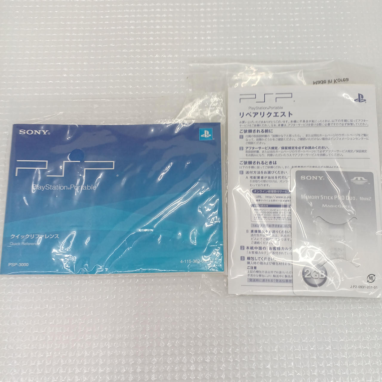 化粧箱 取扱説明書 ACアダプター 電源コード バッテリー(社外製) メモリースティック2GB |
