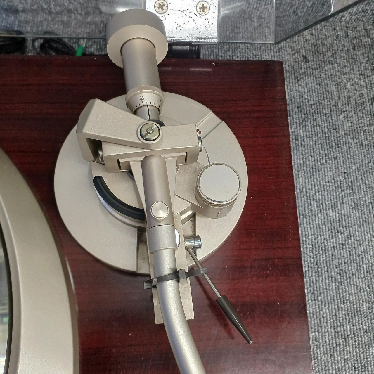 アーム交換が出来るので軽針圧カートリッジにはハイコンプライアンスストレートアーム、標準にはユニバーサルS字アームと使い分けができます。回転系にはクォーツとACサーボモーターを採用 |
