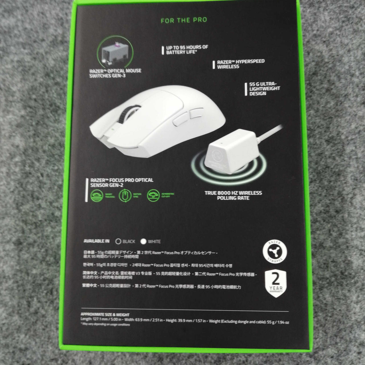 タイプ:光学式マウス インターフェイス:USB/無線2.4GHZ その他機能:カウント切り替え可能 ボタン数:6ボタン 重さ:55g |