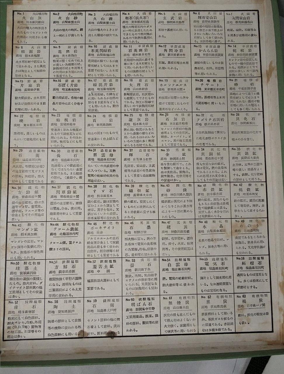 様々な岩石や鉱物、化石が入った標本です!一つ一つの説明文もあるため読んでも眺めても楽しいです!
