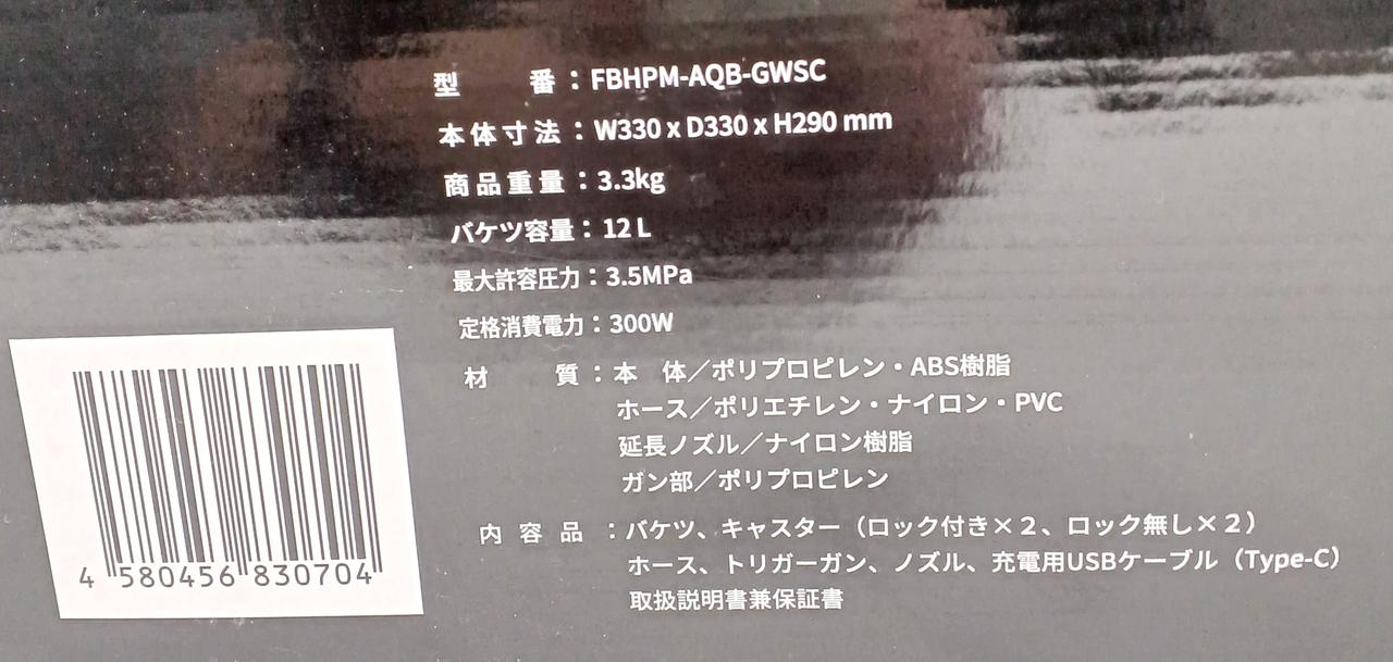 コードレス高圧洗浄器です。未開封品。未開封につき製造年確認できません。 |