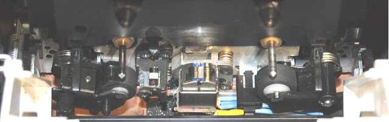 走行系では、テープヘッドを中心にテイクアップ側とサプライ側の双方にキャプスタンとピンチローラーを配置 テープ走行を安定させるクローズドループ・デュアルキャプスタン方式を採用 これにより、ワウ・フラッター特性の向上に加えて、テープ揺れによる変調ノイズの低減を実現しています また、キャプスタン駆動は回転ムラが極めて少ない3相リニアトルクBSLモーターを搭載したダイレクトドライブ方式を採用しており、優れた性能を得ています また、ヘッドには、アモルファス磁性合金の特性を生かしたレーザーアモルファスヘッドをベースにヘッド巻線に高純度無酸素銅PC-OCCを採用したPC-OCC巻線レーザーアモルファスヘッドを採用しています さらに、内蔵オシレーター(発振器)により、使用するテープに合わせてバイアス値を約±20%の範囲で微調整できるバイアスキャリブレーション機能を搭載 テープ感度による録音・再生のレベル差を無くす録音レベルキャリブレーション機能を搭載しています |