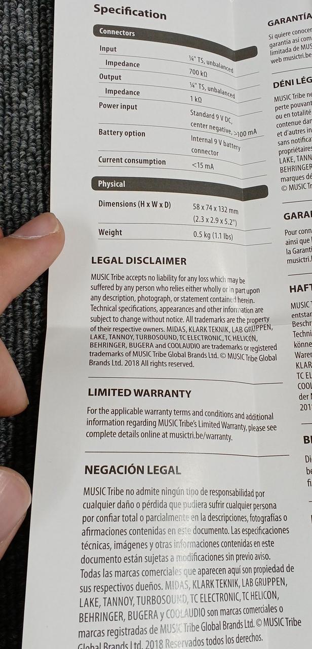 周波数特性に偏りがなく音量のみを最大+20DB増量するクリーンブースター。 |