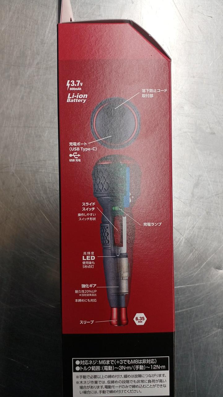 ボールグリップ形状の手動ドライバー感覚で使える、手軽で強力なUSB充電式電動ドライバーです。 |