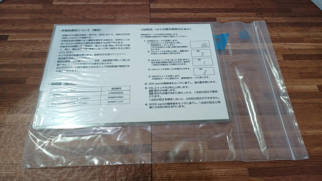 作物搾汁液、土壌水溶液(0.3~2.0ml)を滴下するだけで硝酸イオン濃度を測定 |