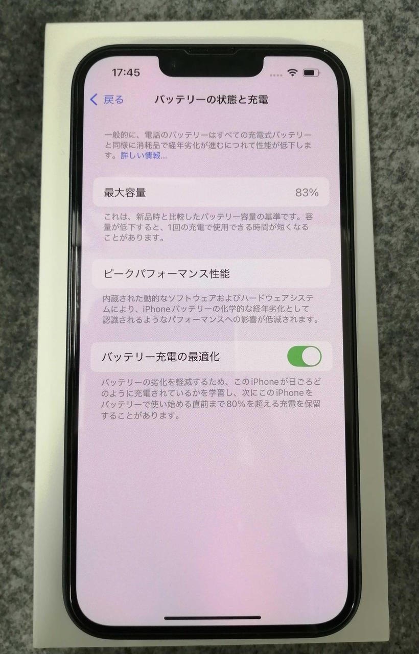 バッテリ最大容量:83% |