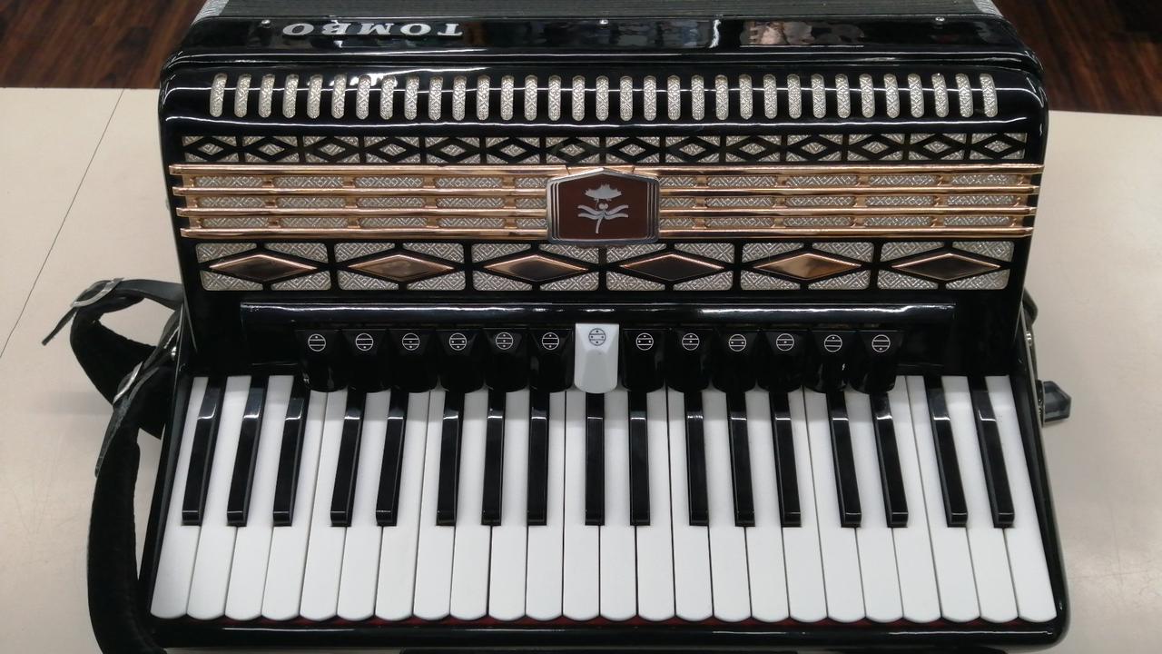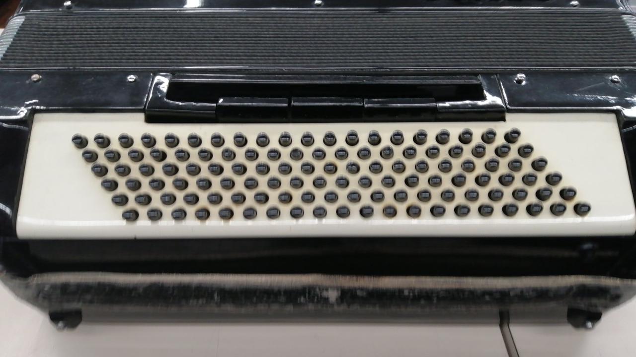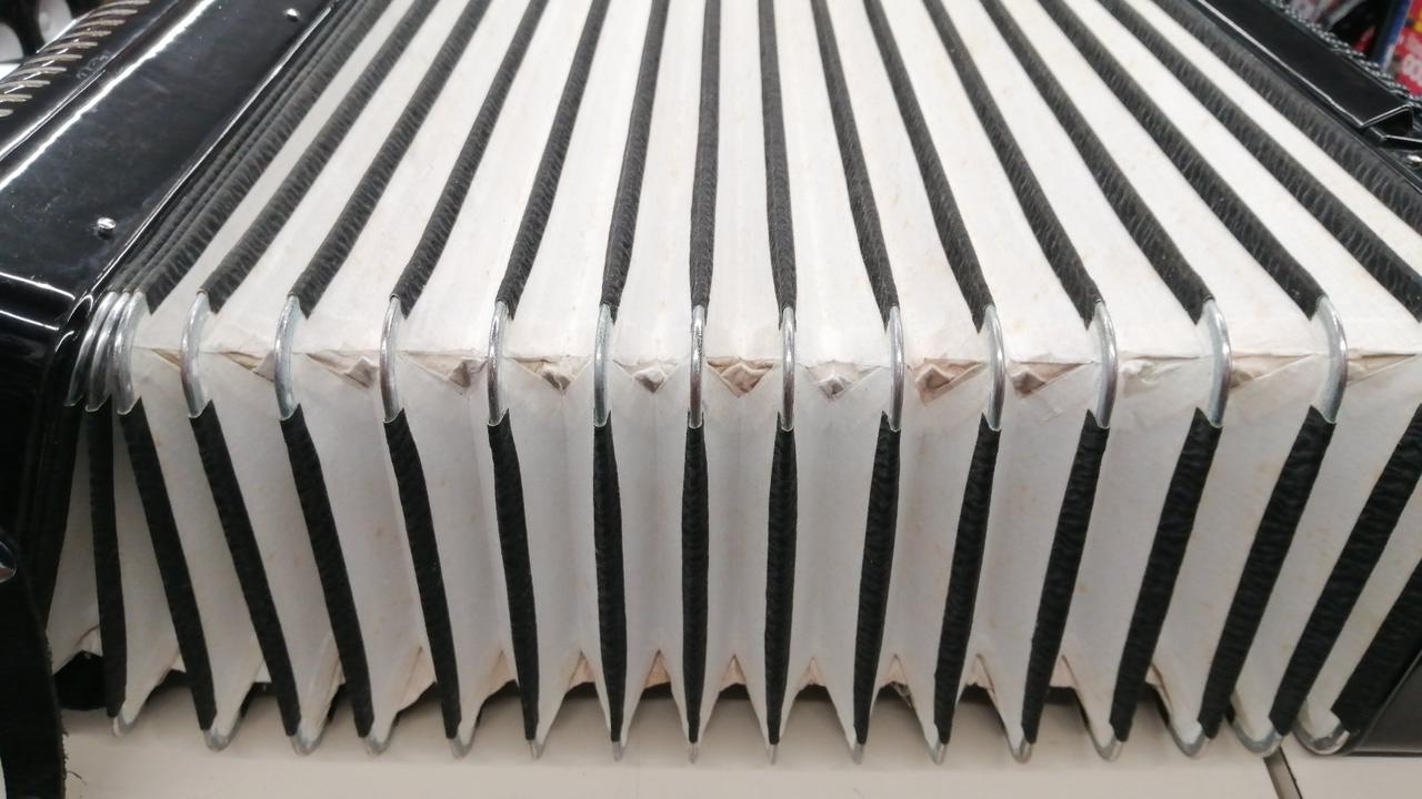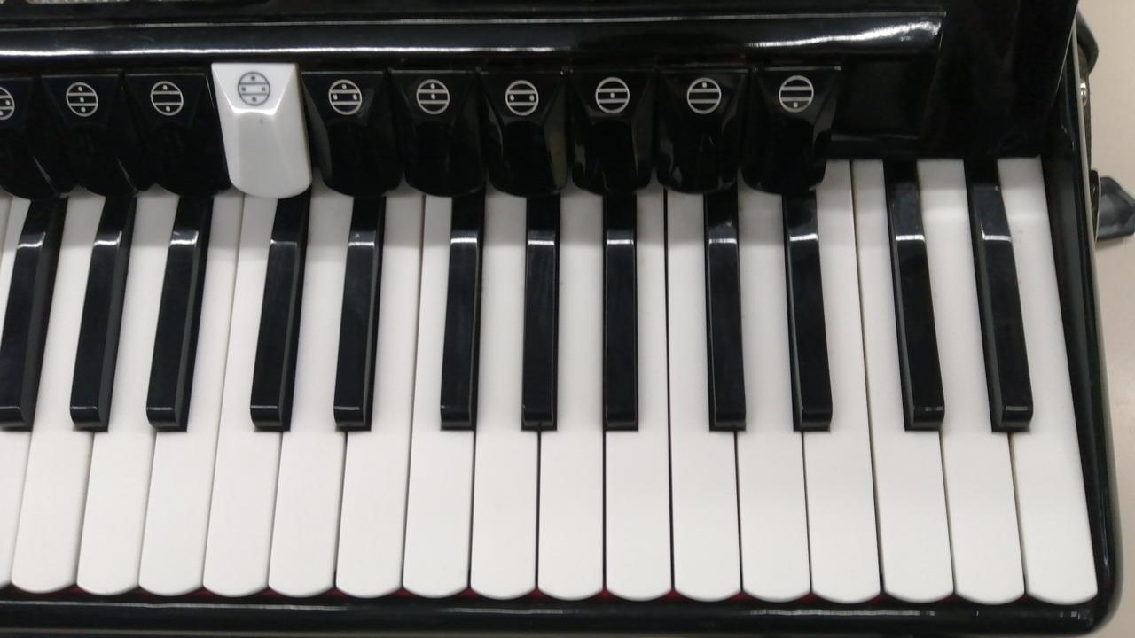 41鍵盤、120ベース、13個のメロディースイッチを搭載した、本格的なヴィンテージ・ピアノアコーディオン |