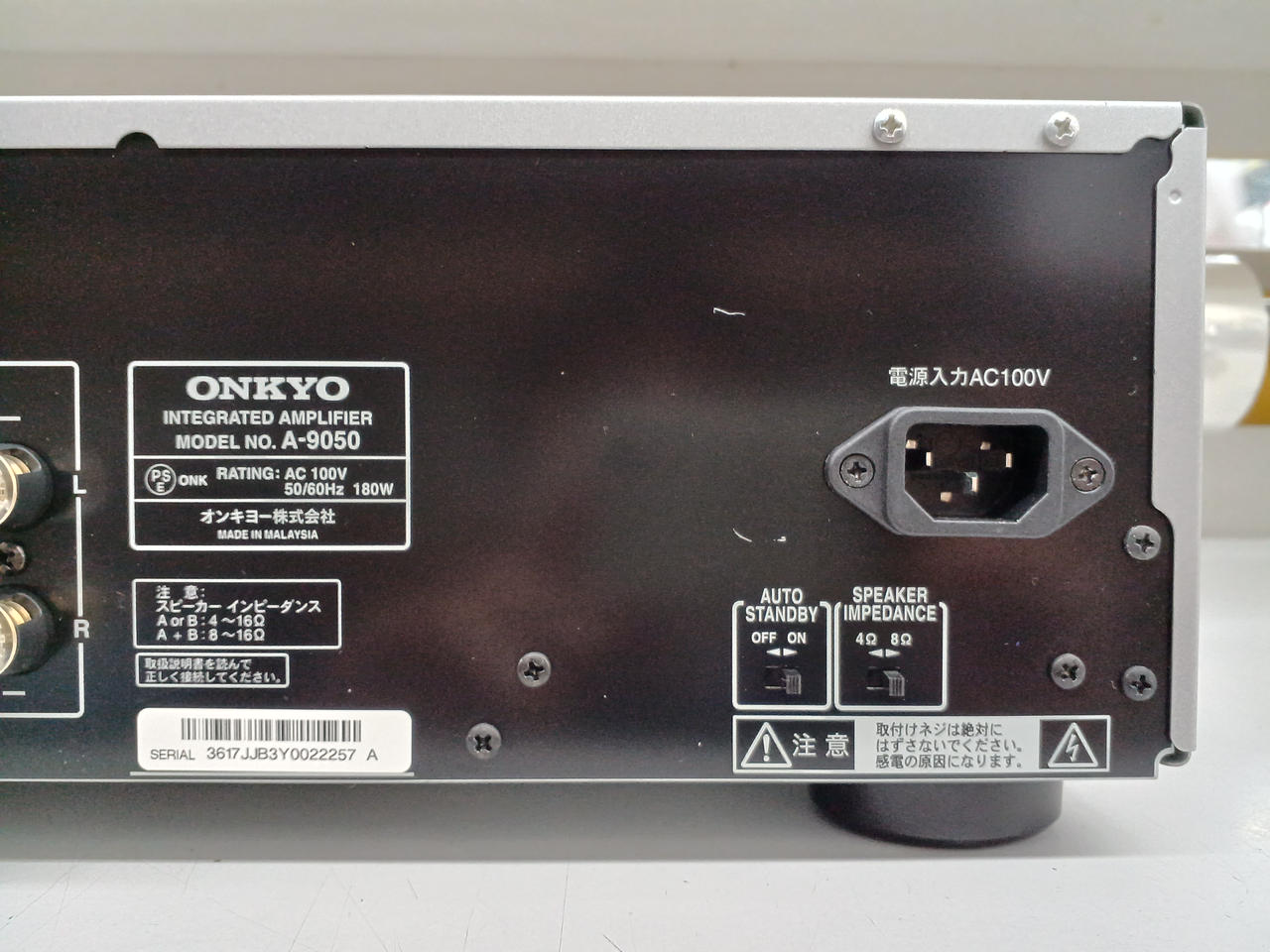 定格出力:75W/8Ω 対応インピーダンス:8Ω 再生周波数帯域:10Hz~100kHz